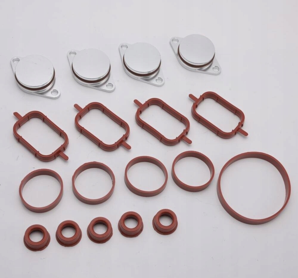 Набор из 4 заглушек впускного коллектора BMW диаметром 33 мм с уплотнительными кольцами, а также комплект прокладок впускного коллектора, опорных колец для винтов и прокладки клапана рециркуляции отработавших газов EGR