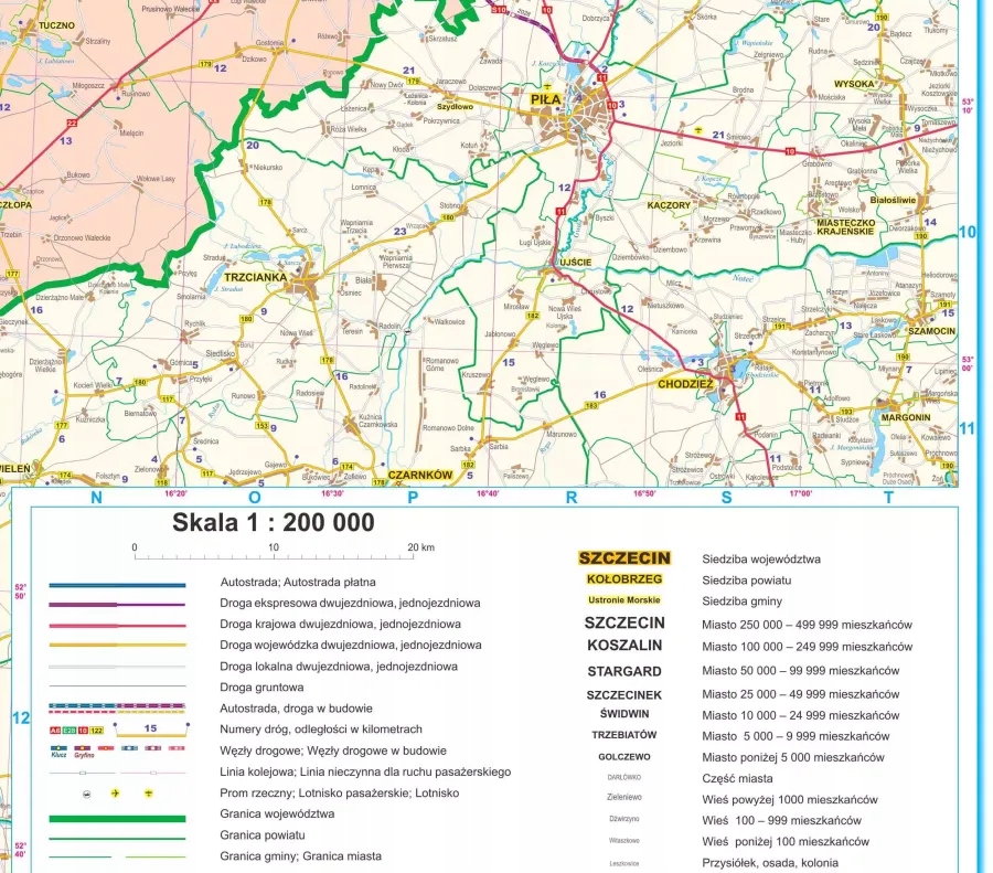 Административная и Дрогова Карта стены Западного Померанского Вуводера по шкале издательства 1: 200 000 издательств Artglob