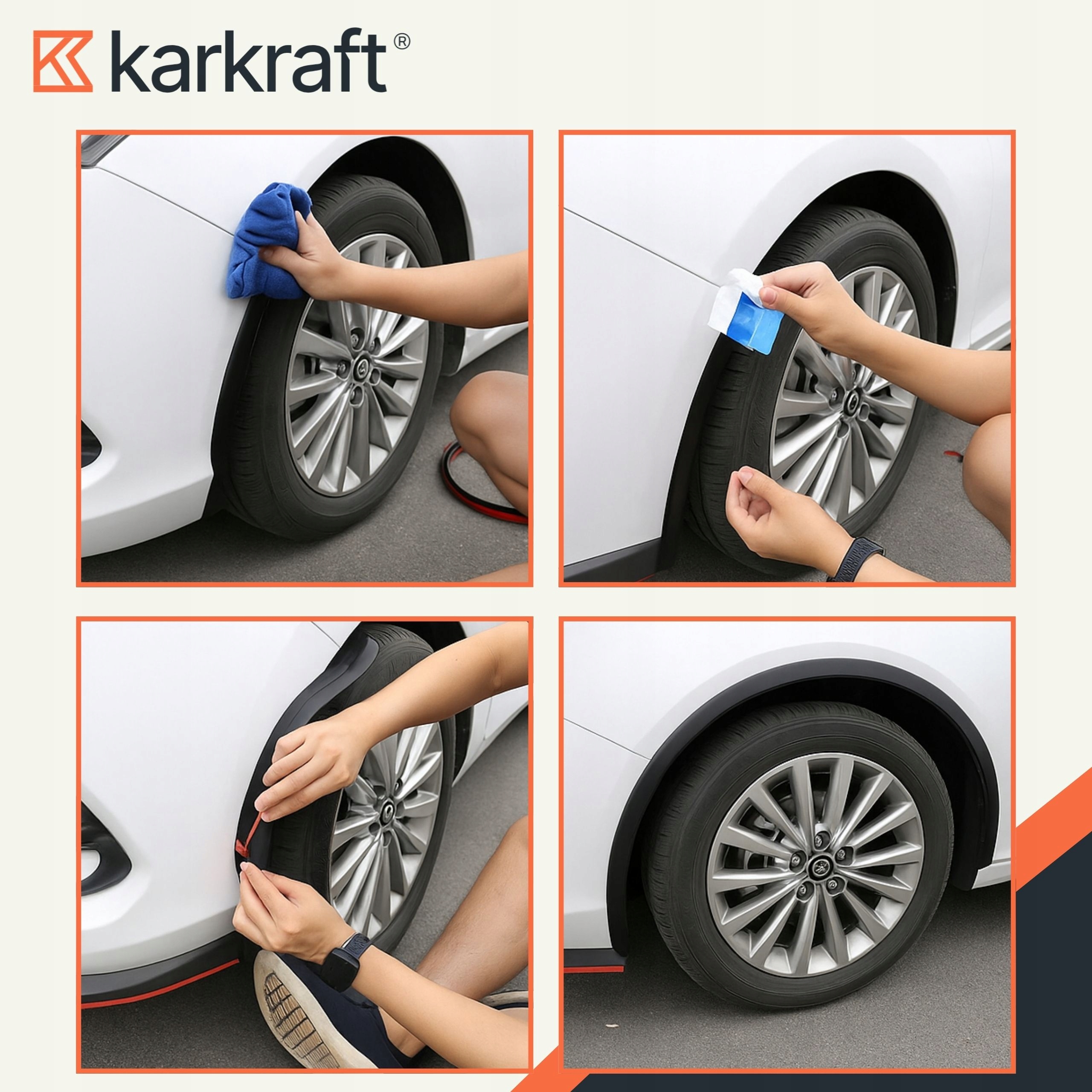 1️⃣ Очистите и обезжирьте край колесной арки.