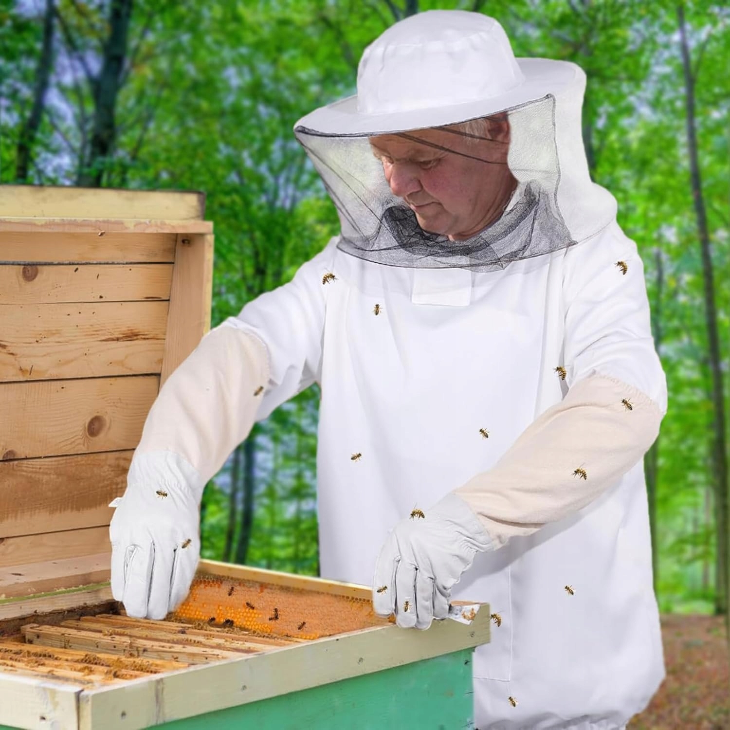 ► 👍 Полная защита】: Когда вы надеваете нашу защитную одежду и кожные перчатки коз, вы будете хорошо защищены, и вы не останетесь на пчелах. Набор подходит для апартаментов, садов, ферм и т. Д. Независимо от того, являетесь ли вы профессиональным пчеловодом или начинающим, что -то для вас