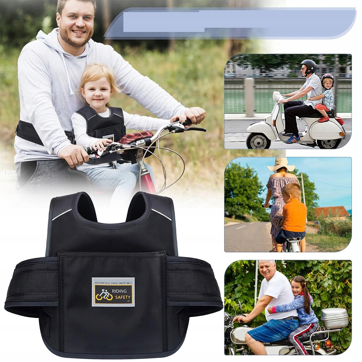 Регулируемая детская мотоциклетная ручка. Цельные лямки прочные и устойчивые к разрыву, с большими карманами для хранения портативных вещей и закусок. Его можно использовать для велосипедов, электромобилей и мотоциклов.
