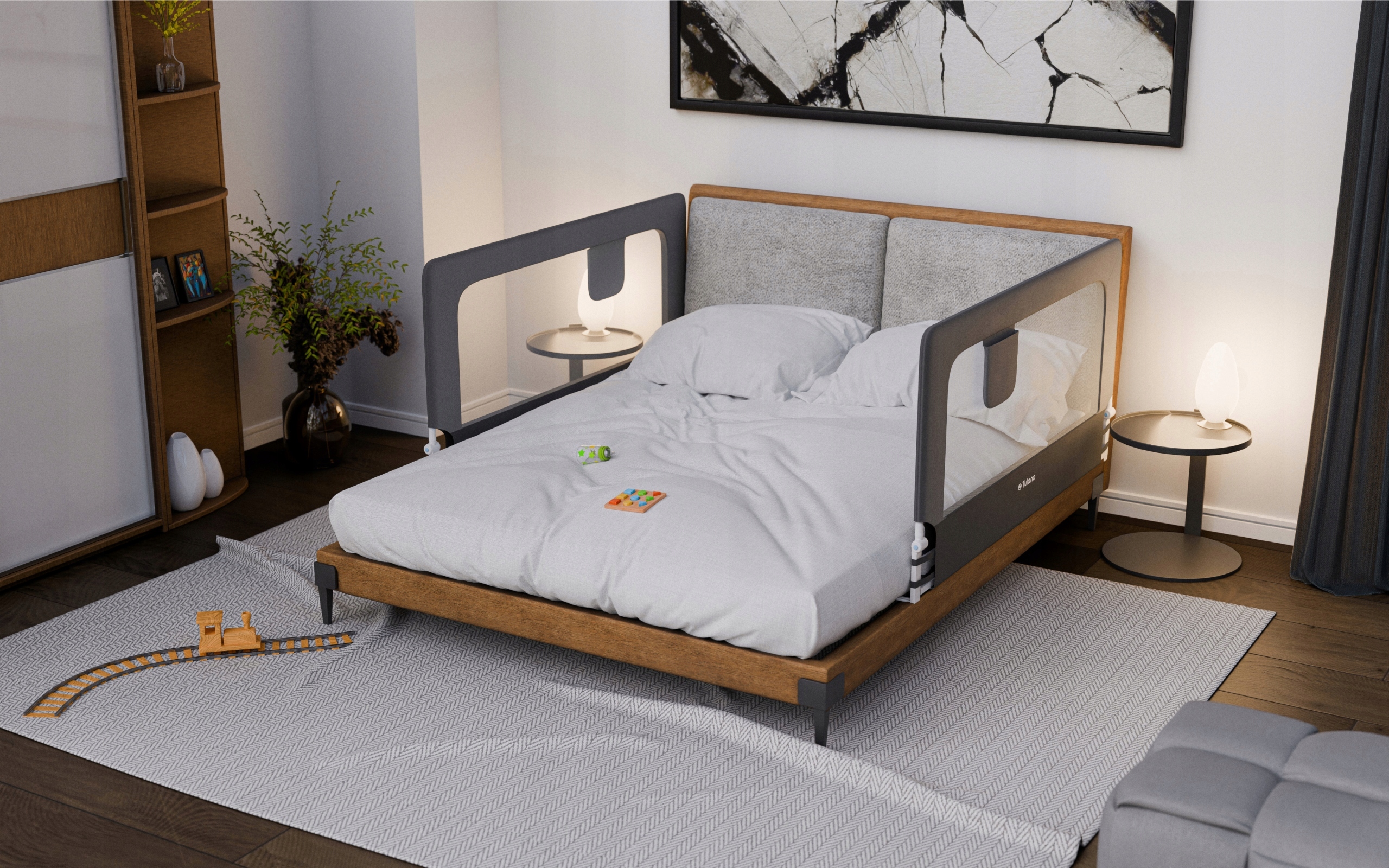 - 2 уровня высоты сборки, чтобы лучше отрегулировать перила на матрас и кровать