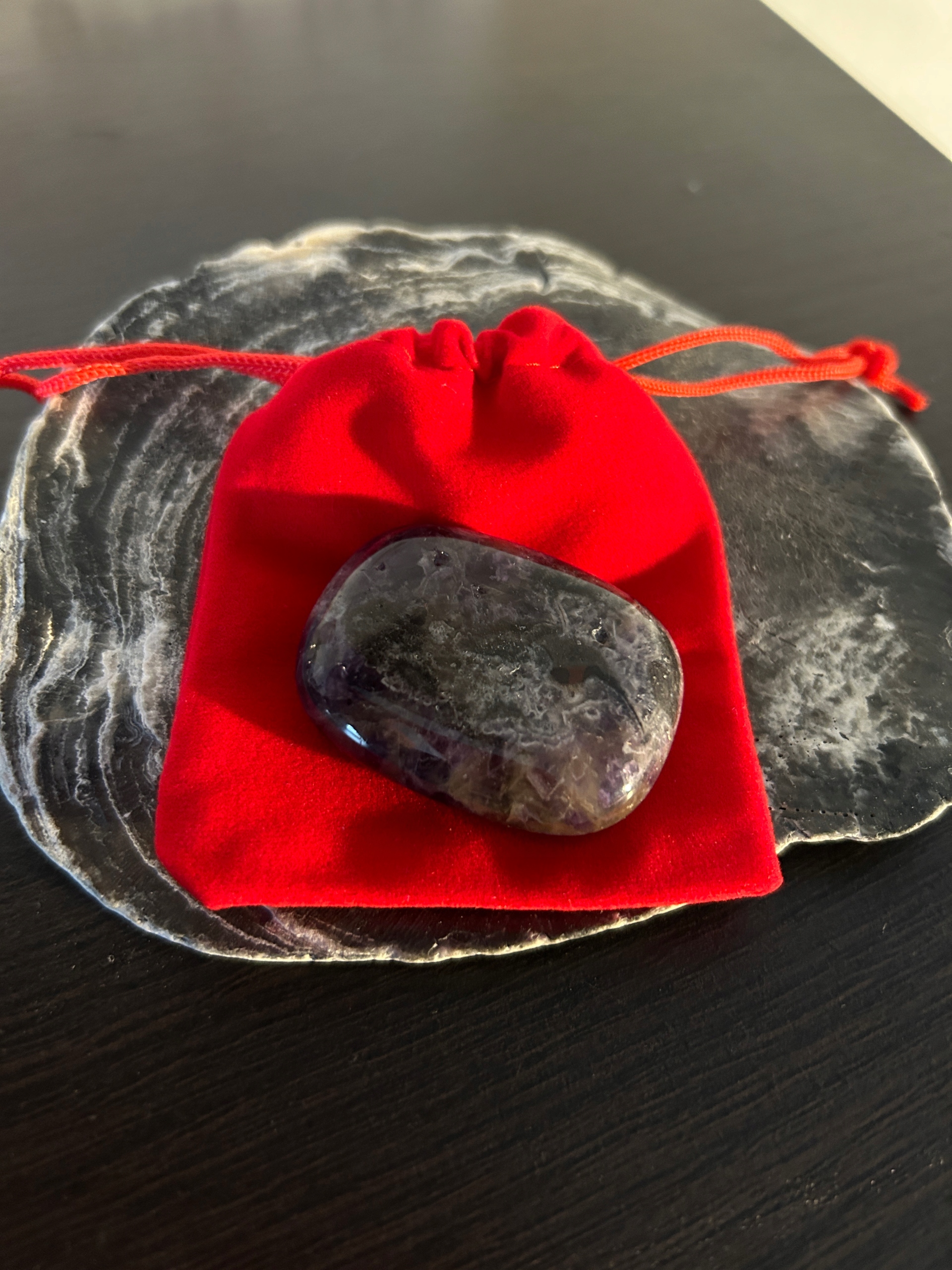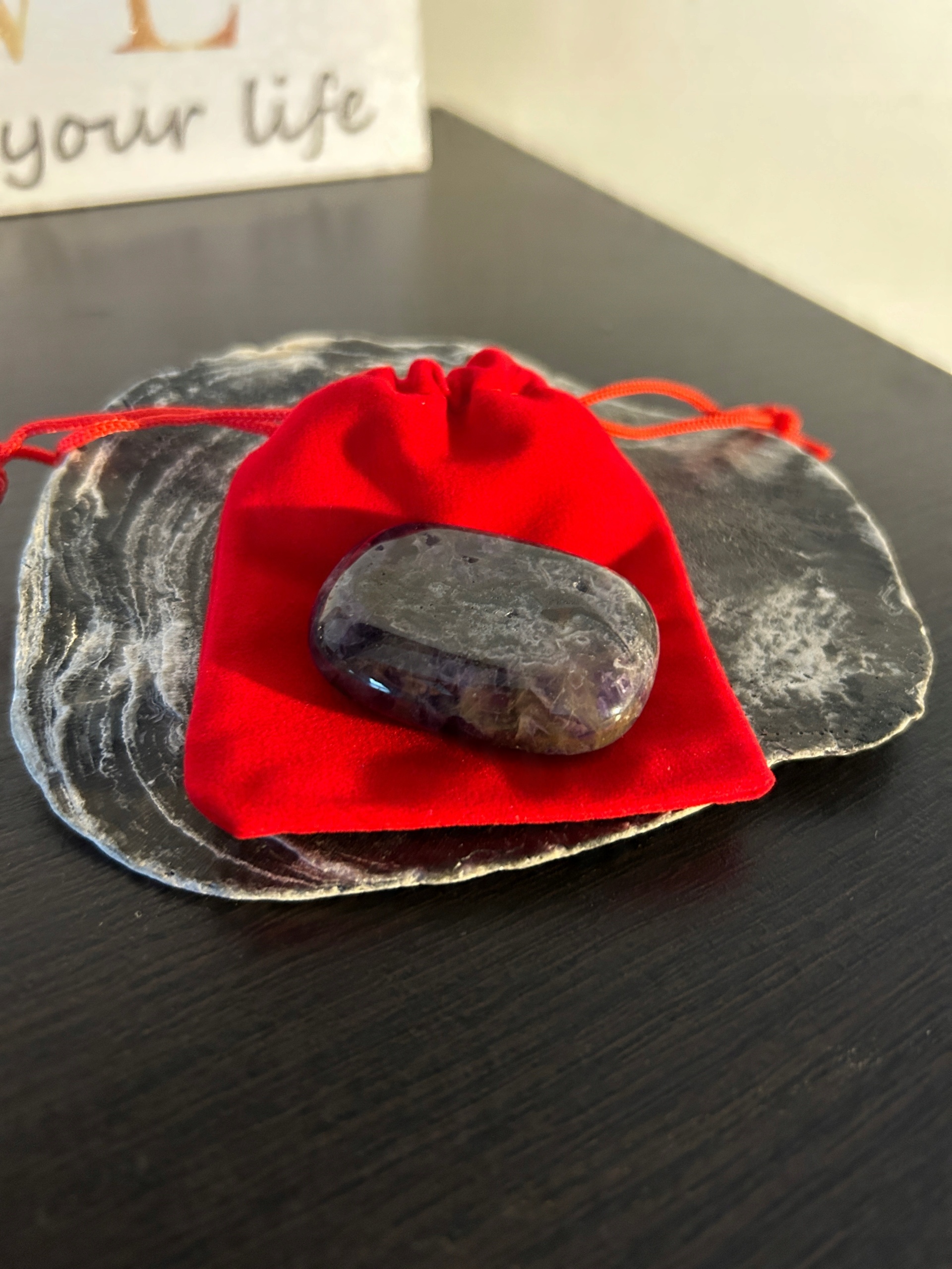 Защитный камень аметист + красный бархатный мешочек для хранения