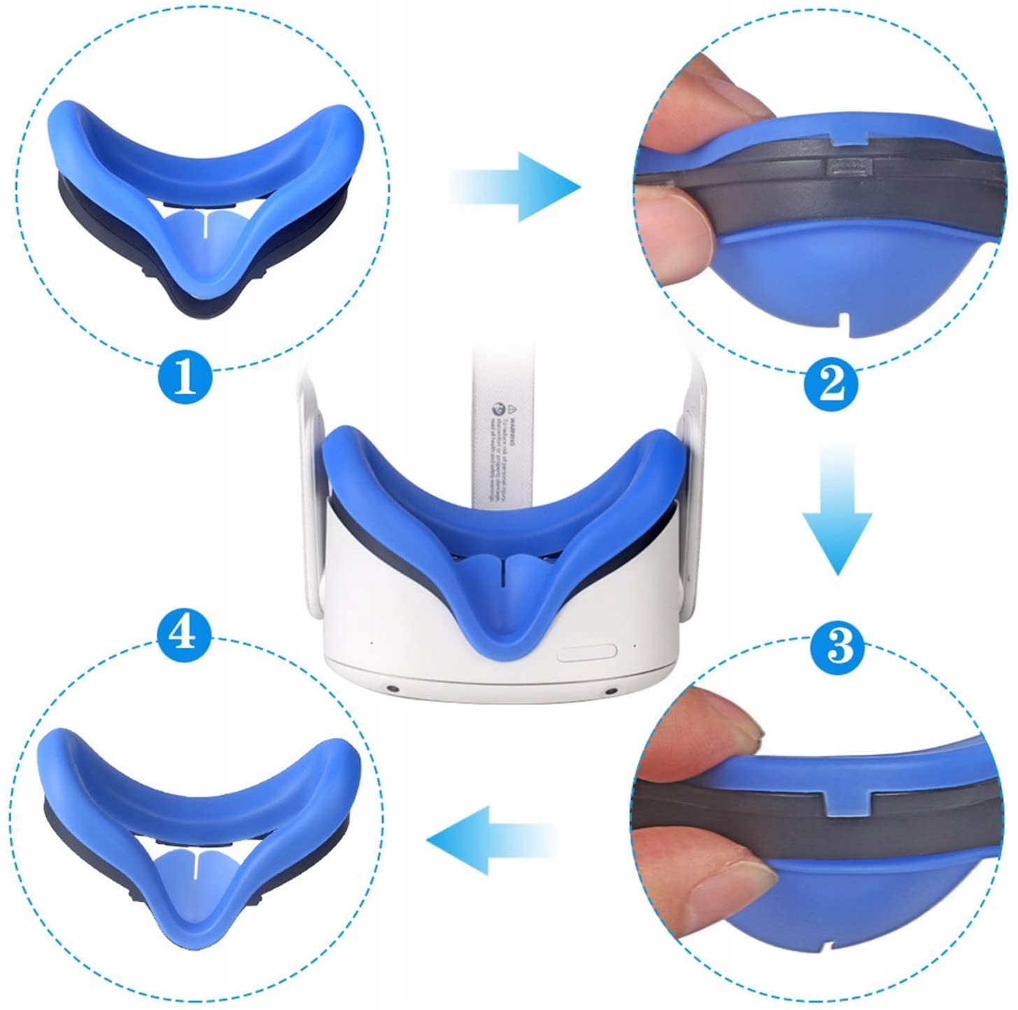 Для очков Oculus Quest 2 мы предлагаем мягкую силиконовую вставку для лица. Накладка эффективно защищает лицо и предотвращает потоотделение, а благодаря накладке на нос лучше блокирует внешний свет.