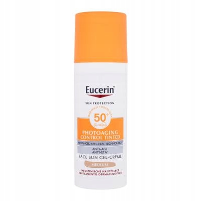 Eucerin Sun Protection Protection Control Control тонированное гель-крем SPF50+ представляет собой подготовку для загара на 50 мл. Он обеспечивает высокую защиту от UVA и UVB -радиации, что помогает защитить кожу от вредного воздействия солнца. Продукт имеет легкую консистенцию гель-крем, которая легко распространяется и быстро поглощается. Кроме того, он содержит пигменты, которые выравнивают тон кожи, придавая ему естественный вид. Идеально подходит для повседневного использования, особенно для людей, ищущих солнцезащитный крем с тонизированием