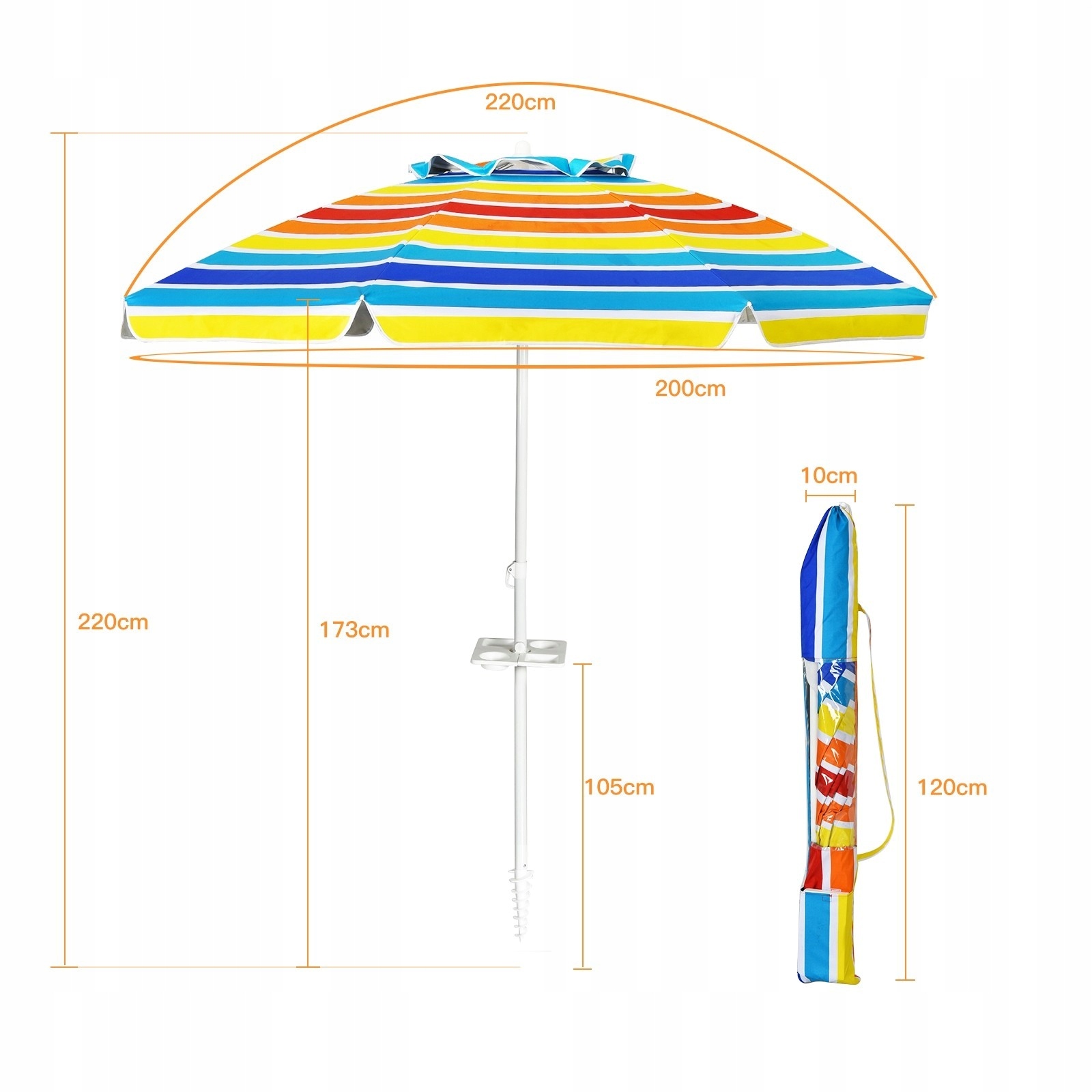 Наш красочный пляжный зонт изготовлен из толстого полиэстера с солнцезащитным защитником UPF 50+, который блокирует вредное излучение летом. Корректировка обеспечивает максимальное покрытие с горящим солнцем.