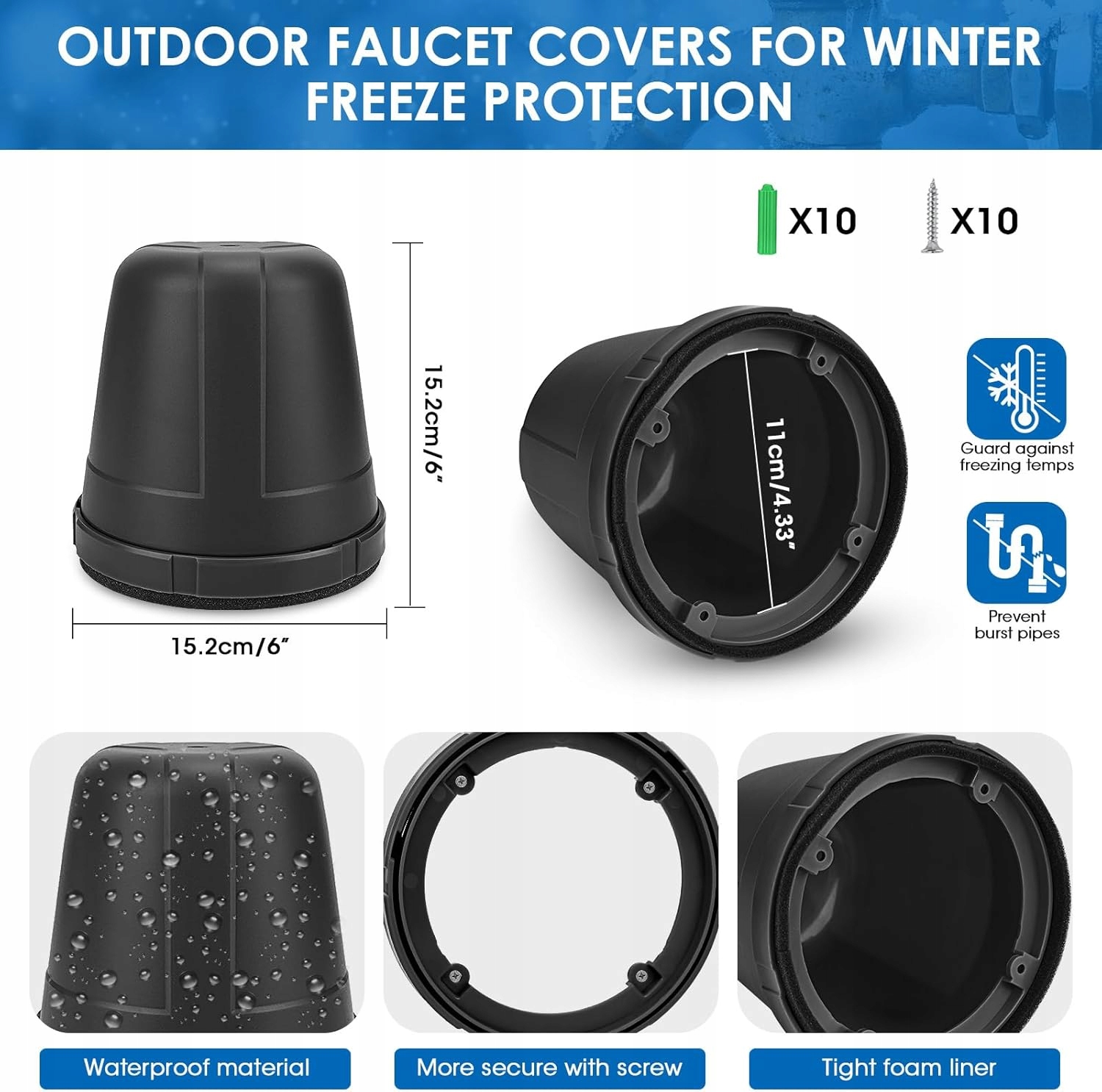 Достаточно, чтобы защитить различные размеры кранов. Идеально подходит для тех, кому нужны внешние чехлы, необходимые для того, чтобы не иметь замороженных или потрескавшихся труб. Должен быть, когда температура падает ниже нуля!