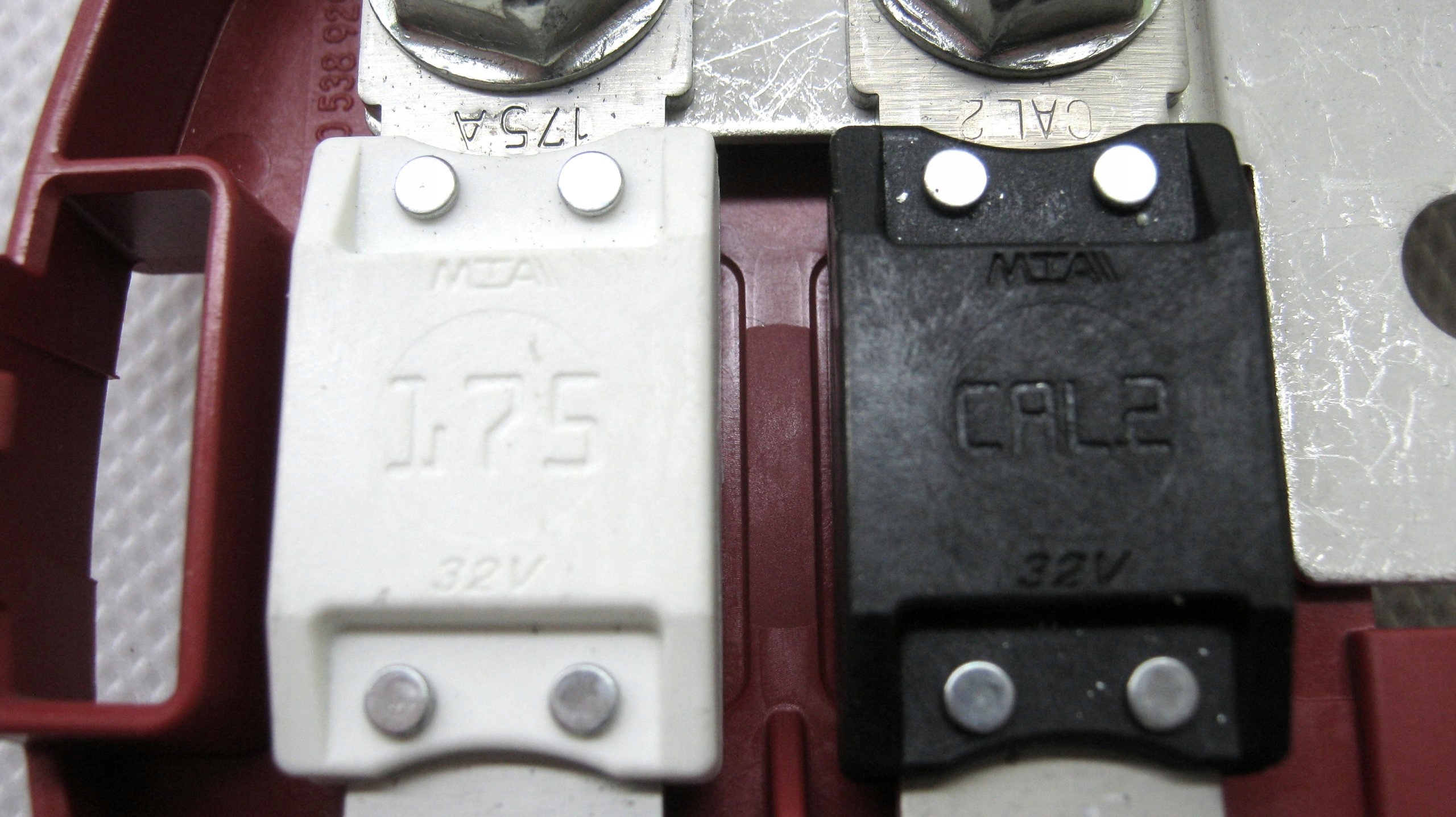 Предохранитель Cal 2 и 175А (предохранитель Cal 2 выкручен из клеммы и видны следы винта).
