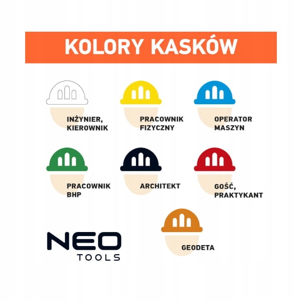 Сертифицированный защитный шлем, белый NEO (арт. 97-201) изготовлен из материала ПНД. Имеет регулируемую окружность основного ремня. в диапазоне от 55 до 65 см, что позволяет подогнать шлем по голове. Шлем Оснащен 6-точечным ремнем безопасности и защитной лентой. Товар весит 322 г. Шлем защищает от травм, вызванных падающими предметами. камни, черепица, кирпичи и другие подобные предметы. Подходит для использования в электроустановки - защищает от электрических разрядов напряжением 1000В переменного тока и 1500 В постоянного тока (установки низкого напряжения).