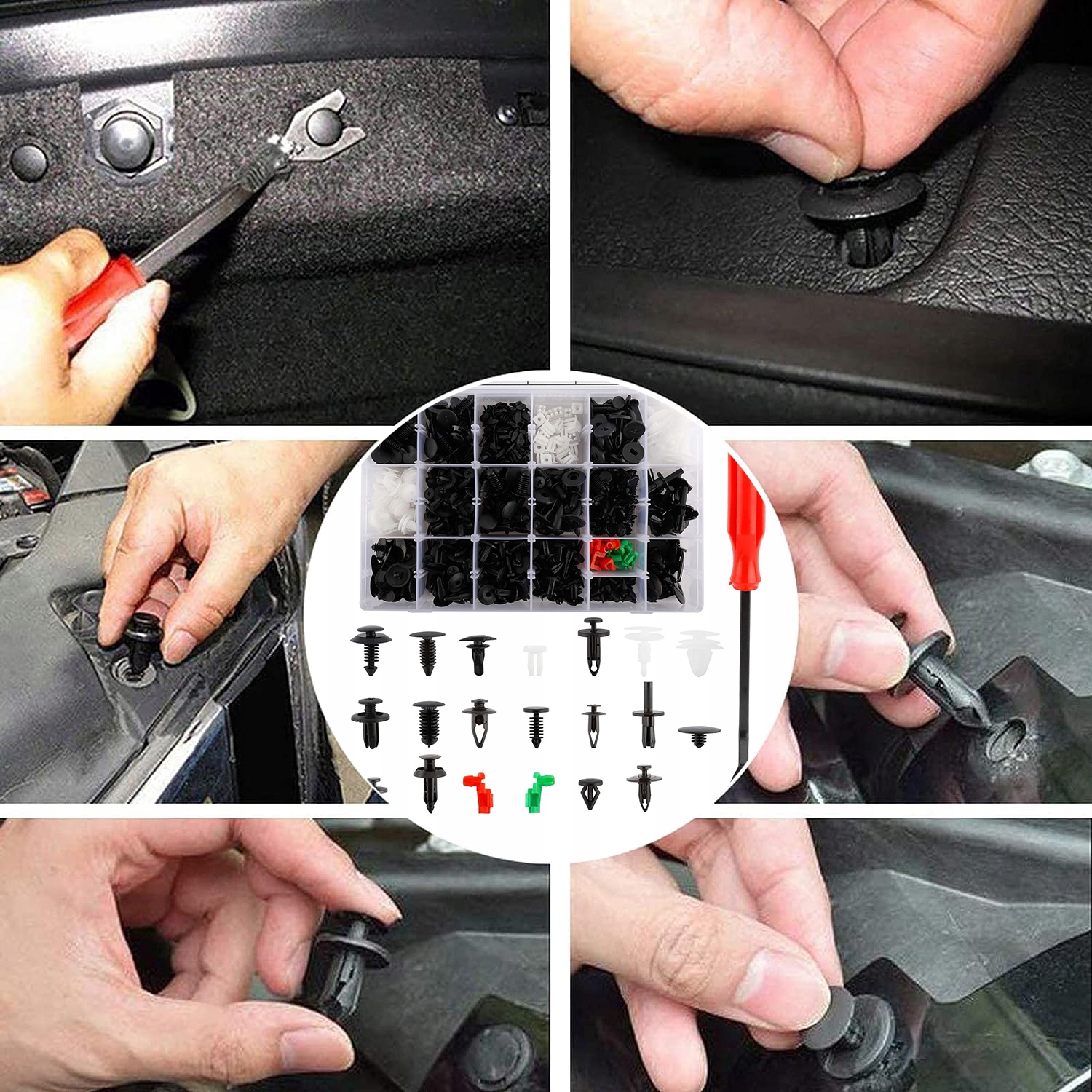 ✅ В комплект входит целых 425 штук автомобильных зажимов из прочного материала. пластик.