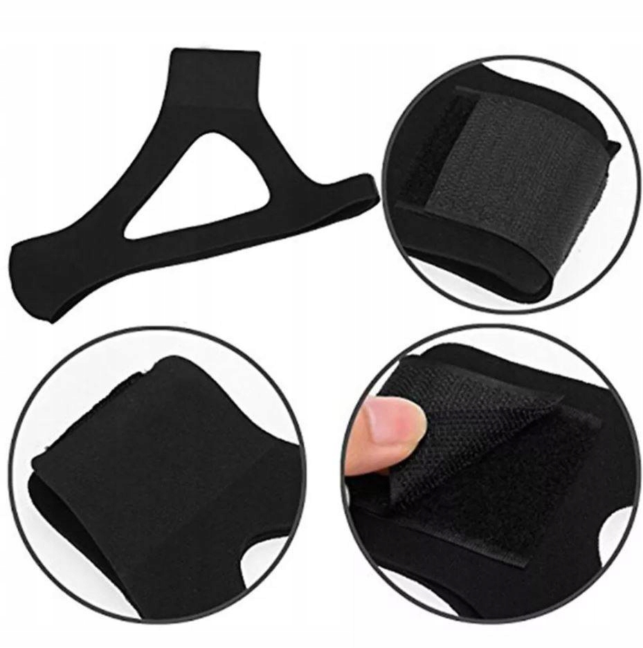 Повязка удерживает подбородок в правильном положении , который поддерживает поток воздуха и дыхание через нос, предотвращает обструкцию дыхательных путей и храп.