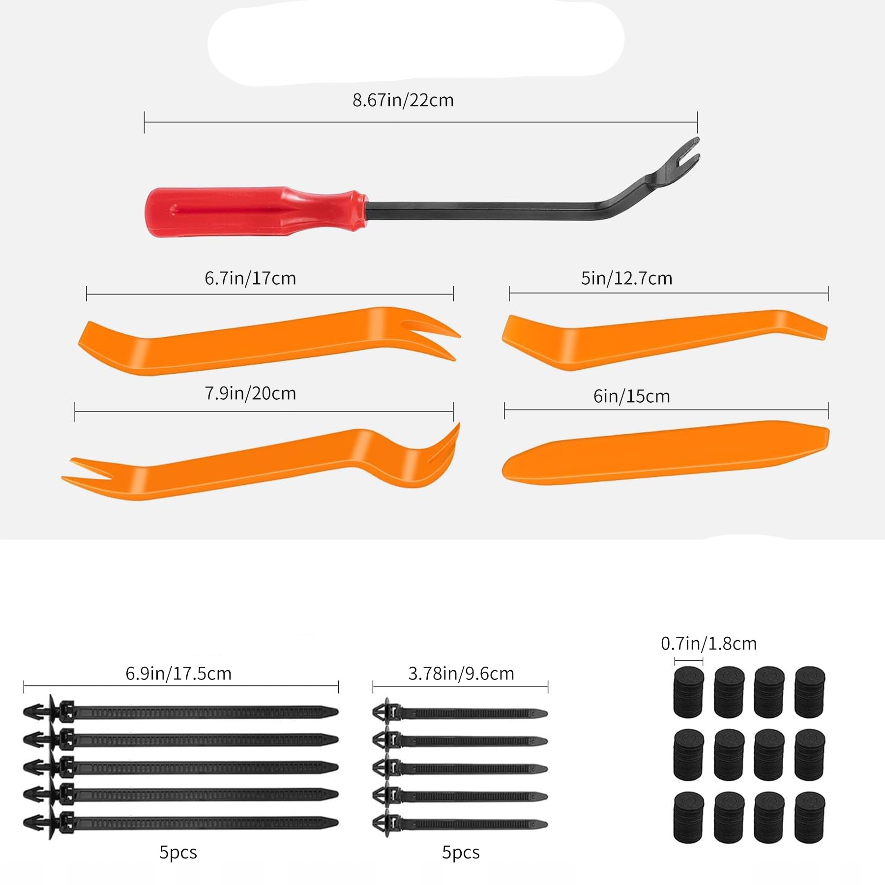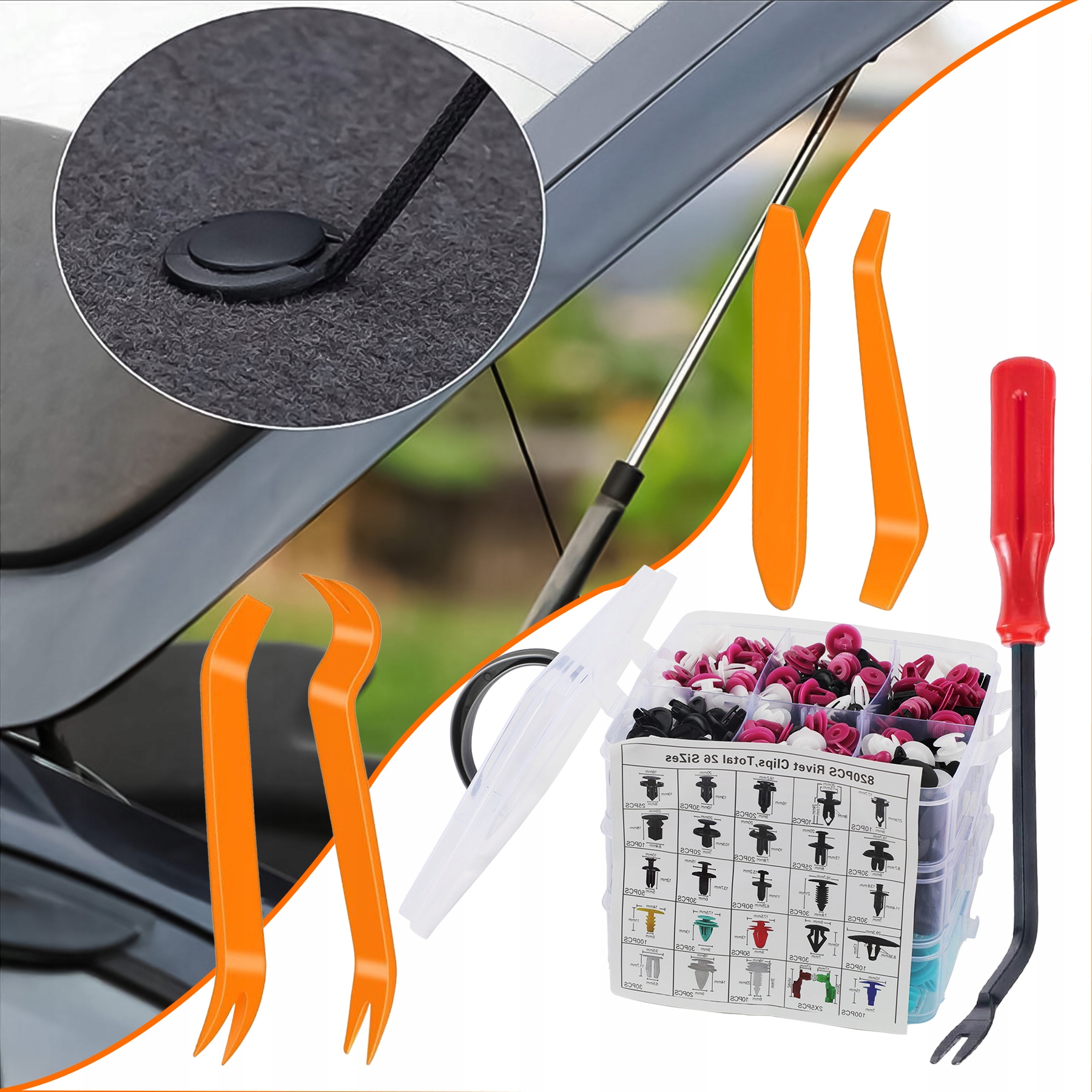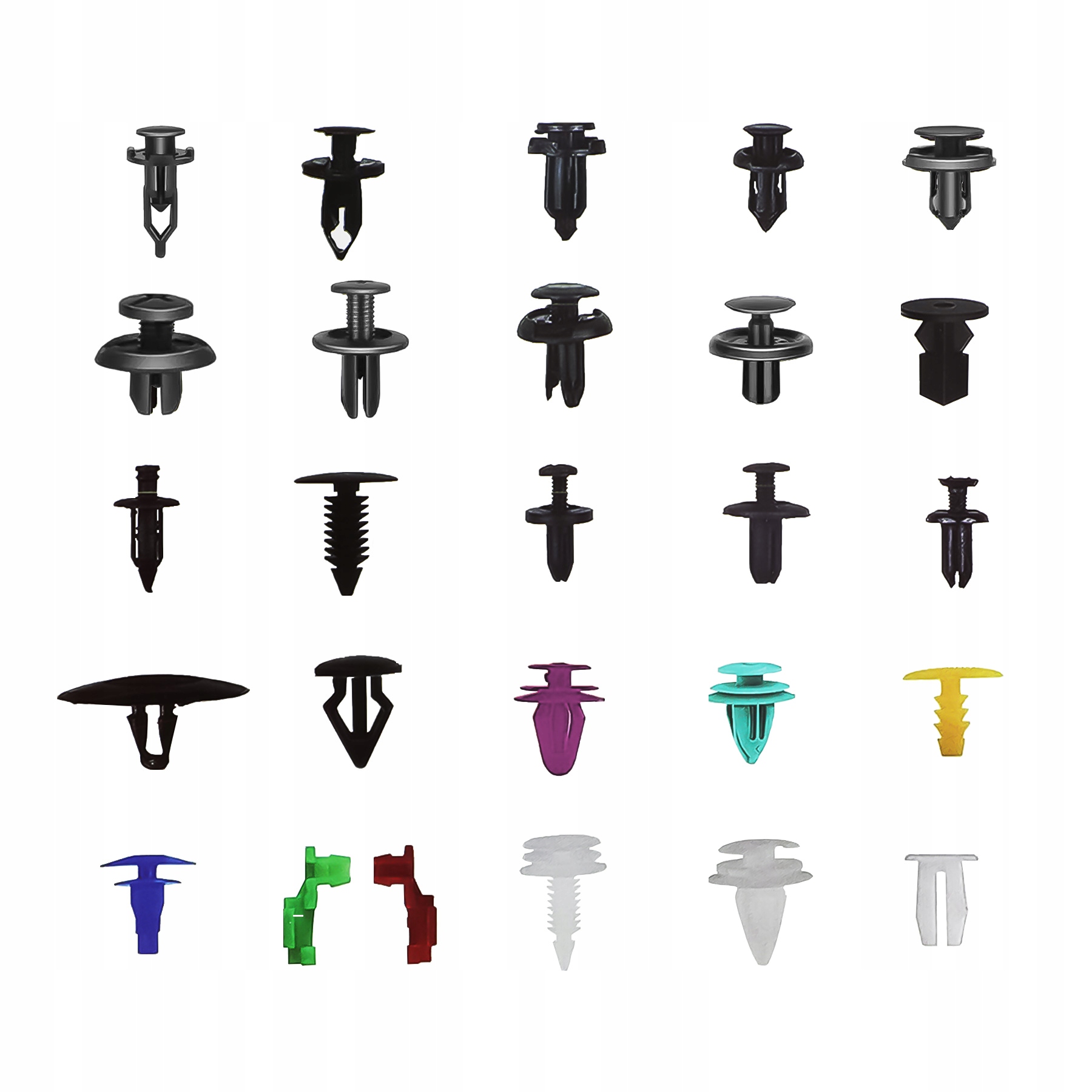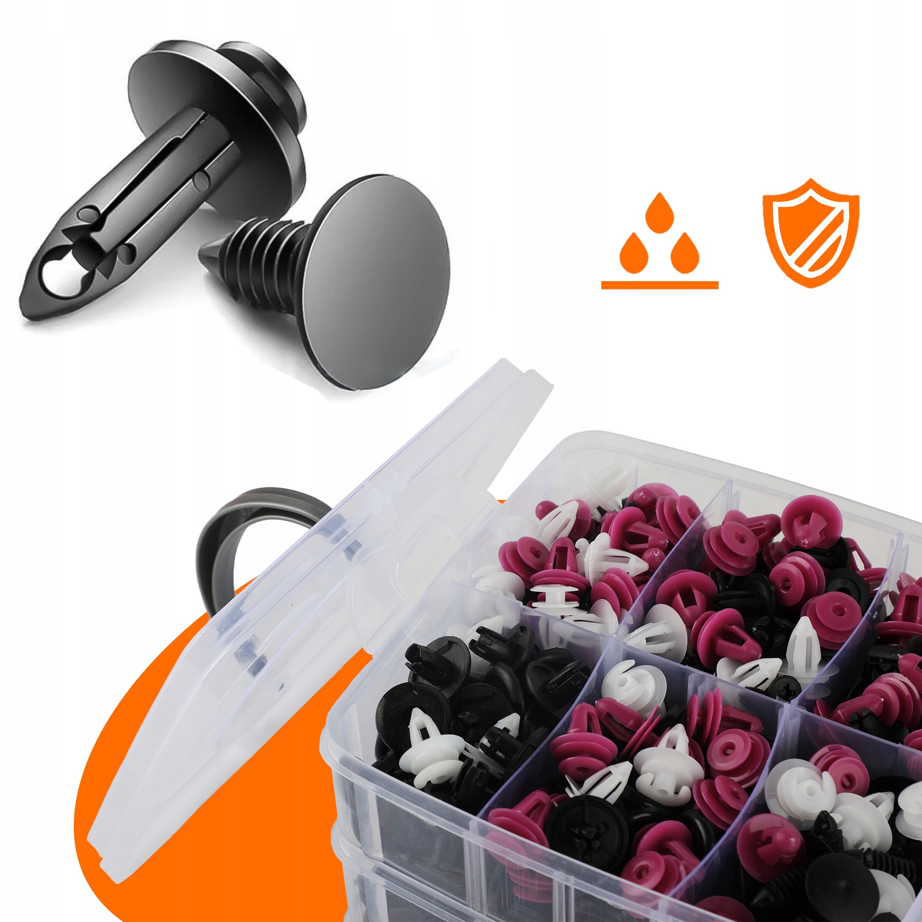 В упаковке вы можете найти различные пластиковые наборы для закрепления заклепков, достаточных для удовлетворения ваших потребностей. Их легко установить, просто удалите исходный зажим и нажмите на новый штифт. Вам не нужно ходить в магазин автомобильных запчастей, чтобы искать различные крепежные элементы. Экономия времени и денег.