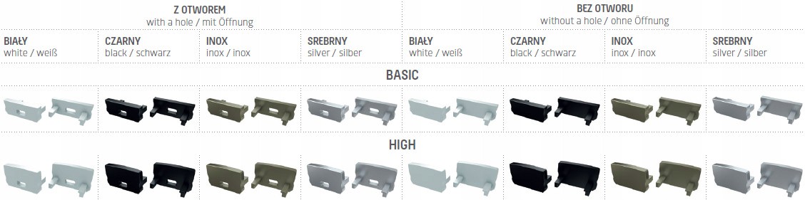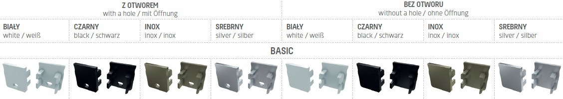 ЗАГЛУШКА ДЛЯ АЛЮМИНИЕВОГО ПРОФИЛЯ A B C D G H без отверстия), если мы не получим такую информацию, будет выслан заглушка в цвете, соответствующем цвету купленного профиля в варианте без отверстия