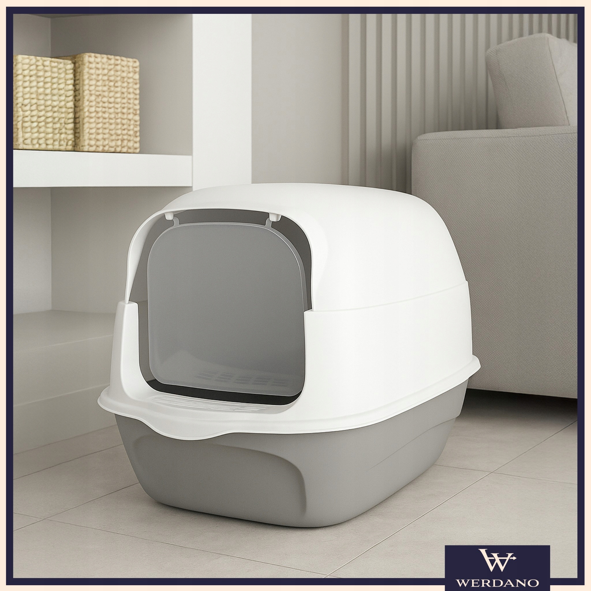 WERDANO PETS закрытый кошачий туалет с совком 50x35x35см Серый и белый
