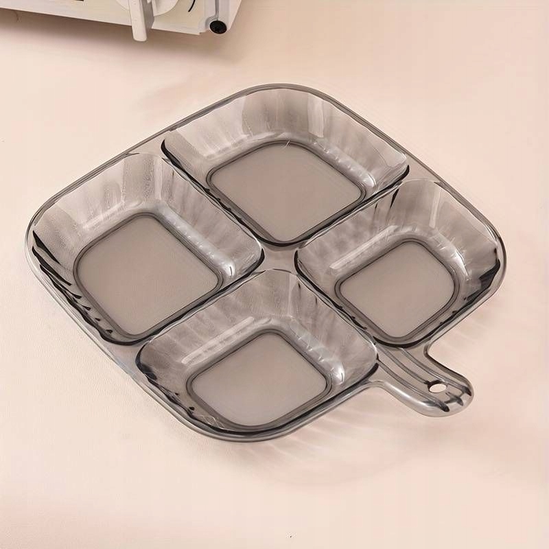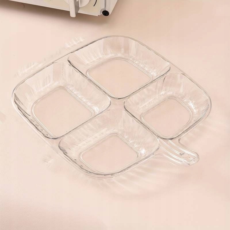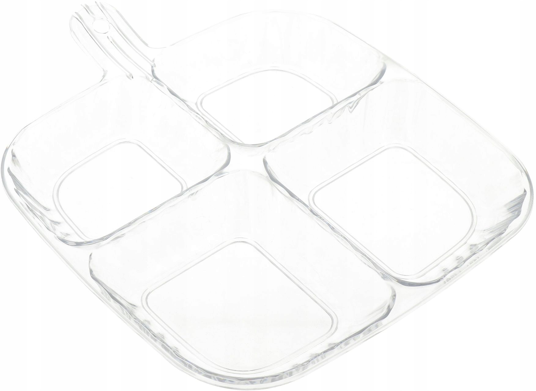 Тарелка имеет 4 углубления, что делает ее идеальной для подачи закусок, закусок, соусов, соусов и фруктов.