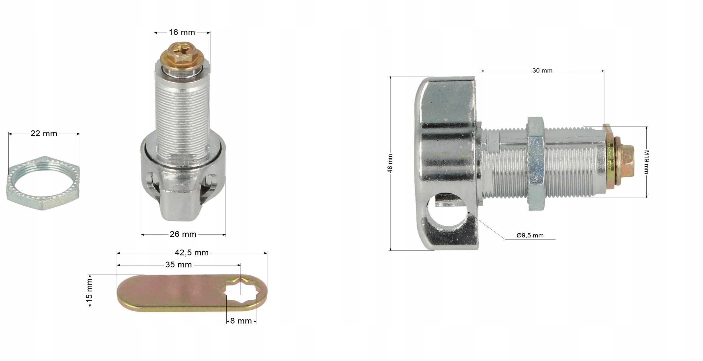 Zamek krzywkowy na kłódkę do szafki szuflady fi19x30mm 90°