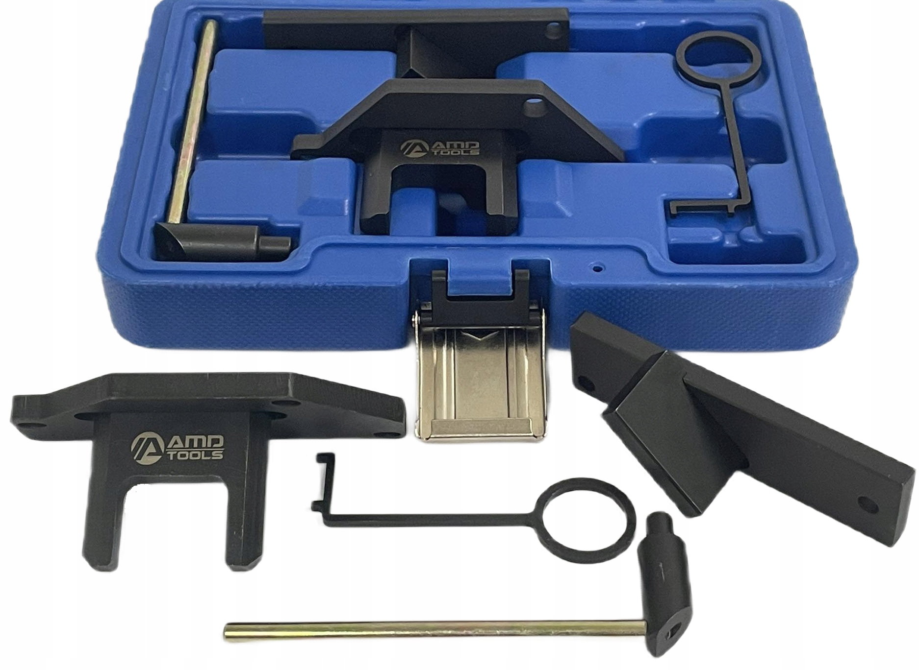 Фиксатор известного бренда AMD Tools позволяет установить распредвалы и коленвал в нужное положение при замене ремня ГРМ и шкива.