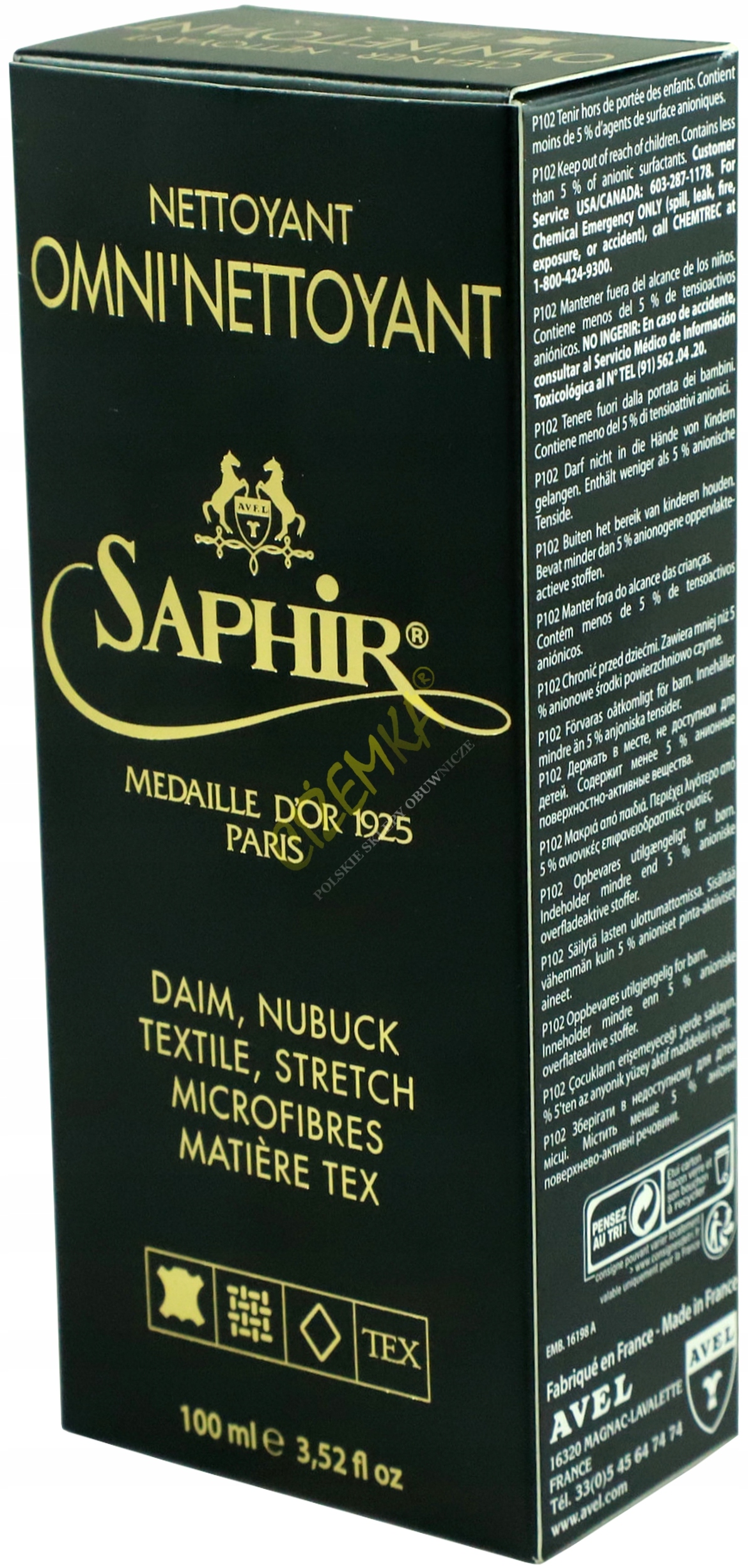 SAPHIR MEDAILLE D'OR OMNIDAIM, ОЧИСТИТЕЛЬ, ЧИСТЯЩАЯ ЖИДКОСТЬ ДЛЯ ЗАМШИ, НУБУКА, ТЕКСТАЛЯ, СТРЕЙЧА И МИКРОФИБРЫ, 100 мл