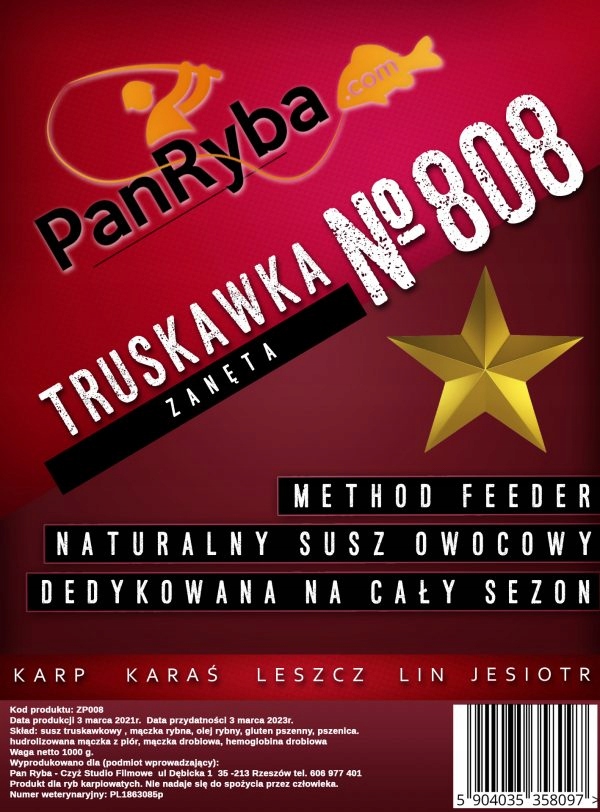 Популярный аромат сладкой клубники является наиболее эффективным ароматическим аттрактантом в польском коммерческом рыболовстве. ВНИМАНИЕ !!! Из-за большого количества фракций
