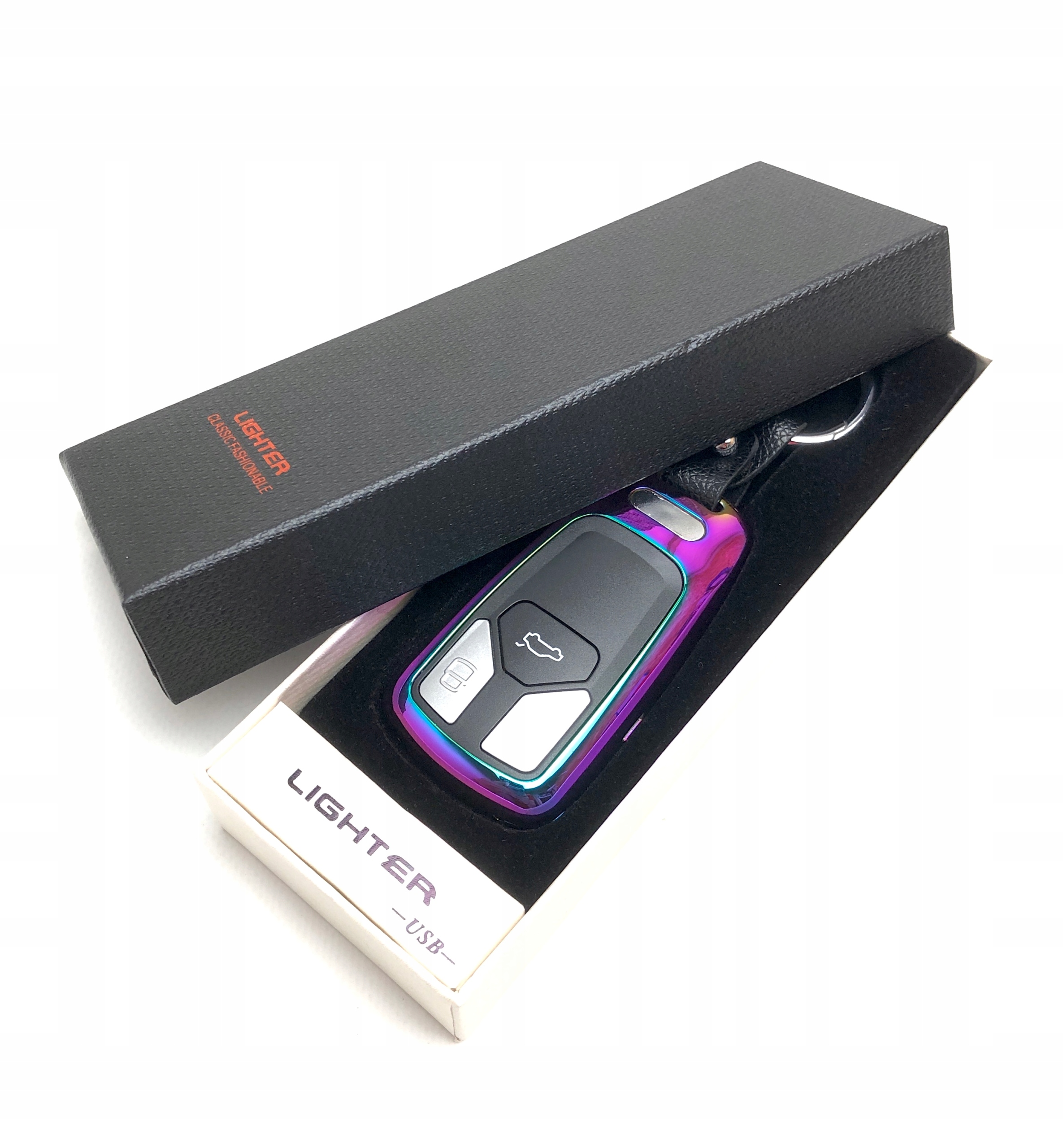 - По форме напоминающая ключ от автомобиля AUDI, она идеально подойдет в качестве подарка выдающимся коллекционерам зажигалок. Зажигалка имеет встроенный аккумулятор, который заряжается через USB-порт.