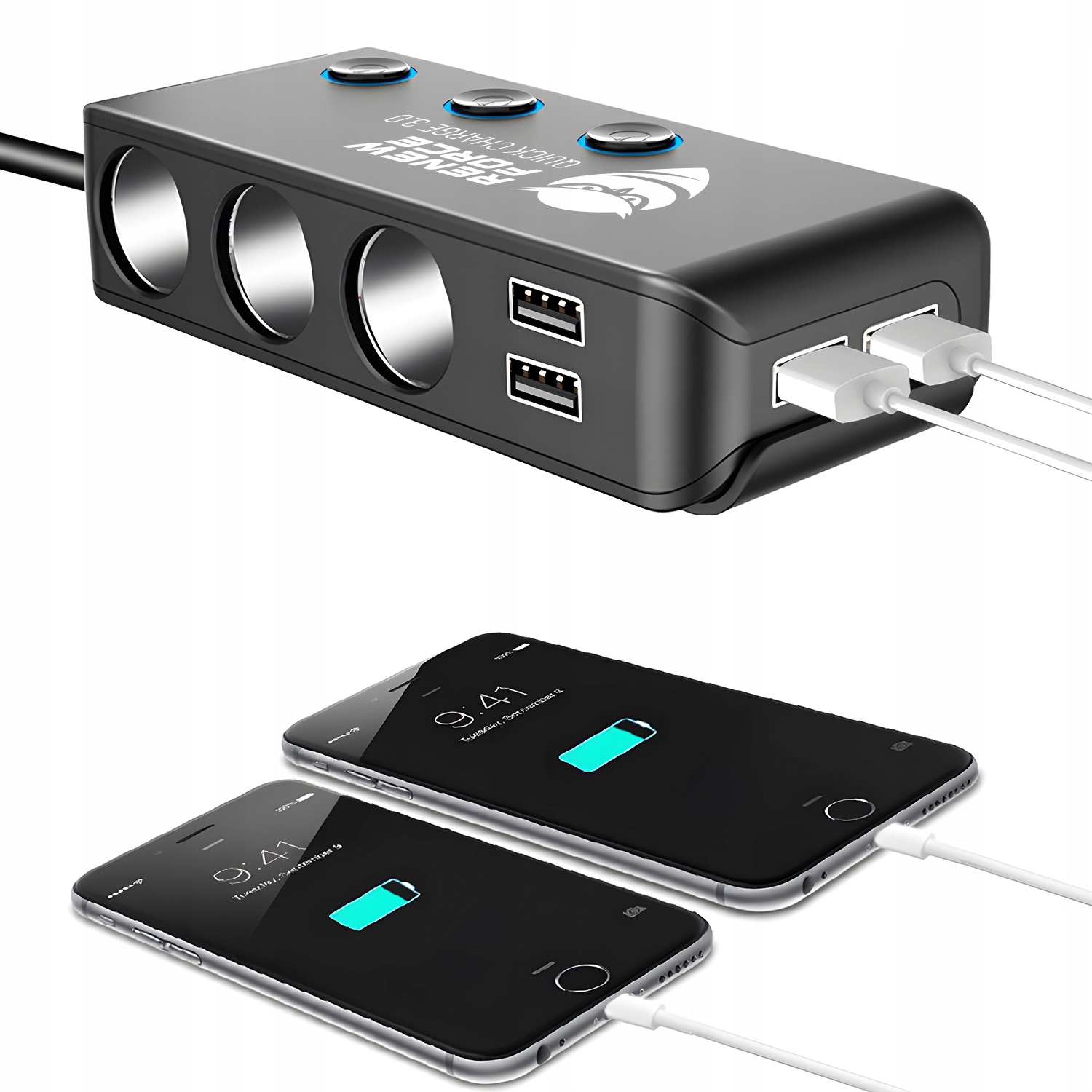 🔅 ВЫКЛЮЧАТЕЛИ ПИТАНИЯ ДЛЯ РОЗЕТОК ПРИЖИГАТЕЛЯ Для обеспечения полного контроля над электропитанием распределитель оснащен выключателями питания для каждой розетки прикуривателя. Вы можете легко включать и выключать питание, когда оно вам не нужно, что помогает экономить электроэнергию и защитить автомобильный аккумулятор.