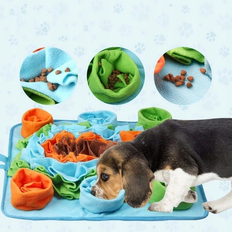 Искать лакомства, спрятанные хозяином в уголках коврика, для собаки непростая задача.
