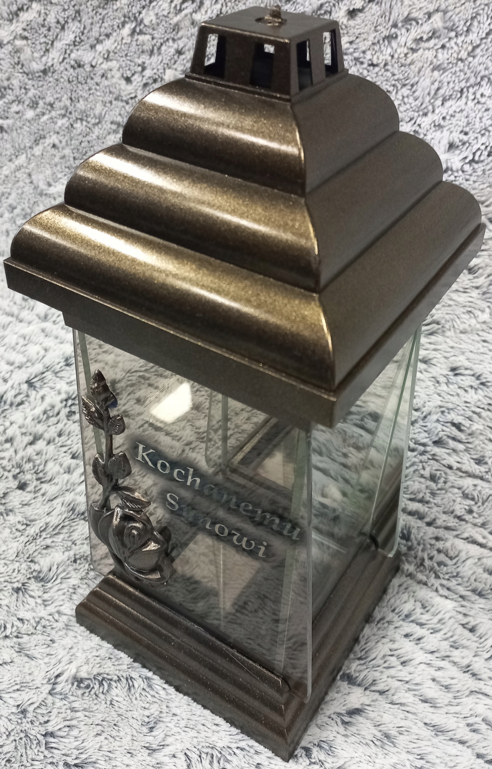 Свеча-фонарь для памятника, надпись ДОРОГИМ СЫНОКОМ