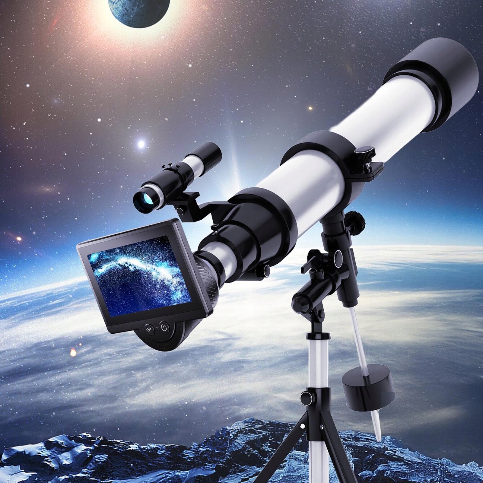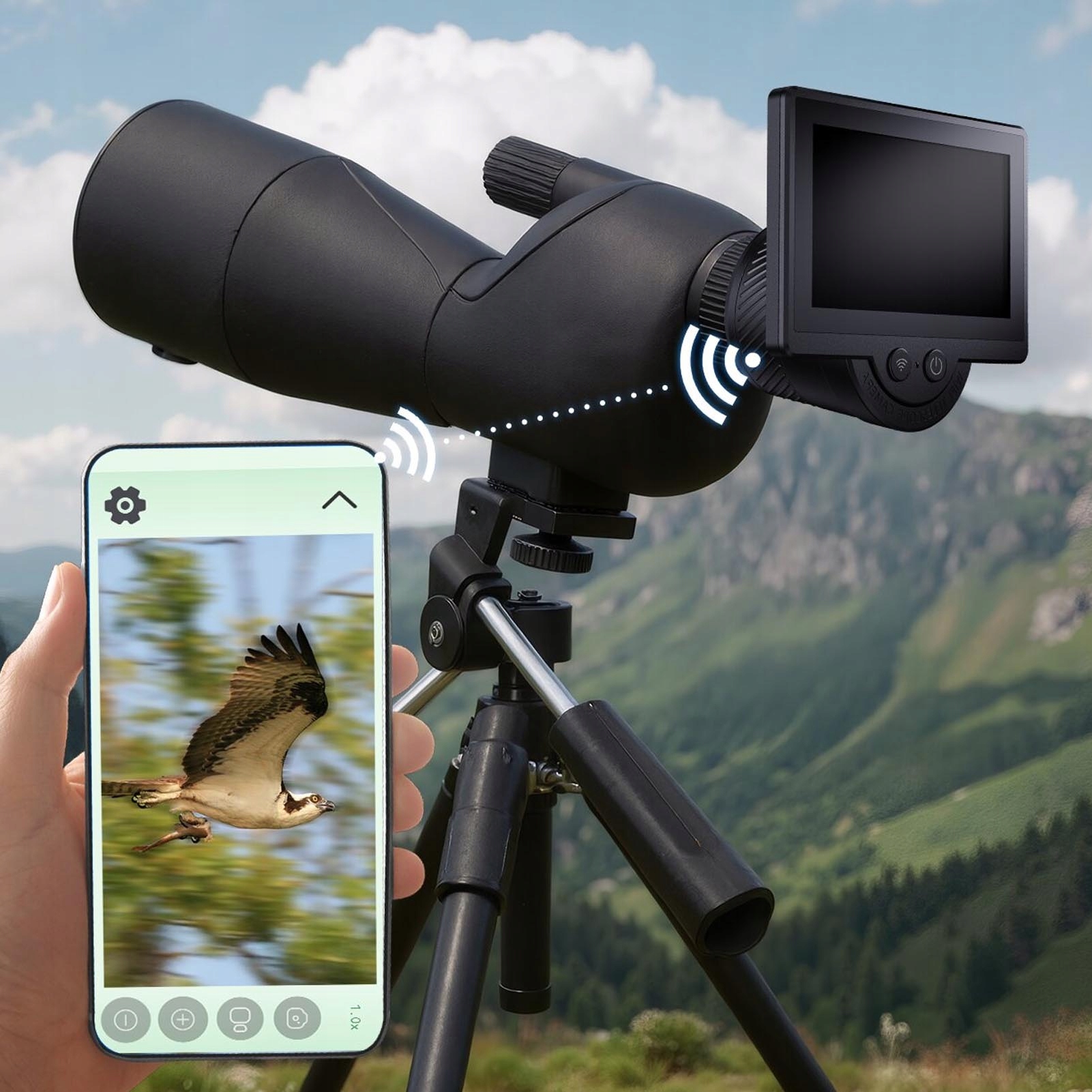 1. 4,3-ДЮЙМОВЫЙ ЭКРАН С HD-ВИДОМ: Модернизированный окуляр камеры телескопа Wi-Fi оснащен 4,3-дюймовым HD-экраном, который отображает наблюдения в ярких цветах и с высокой детализацией для интуитивно понятного просмотра. Такое подключение к Wi-Fi обеспечивает удаленный просмотр и повышает удобство работы.