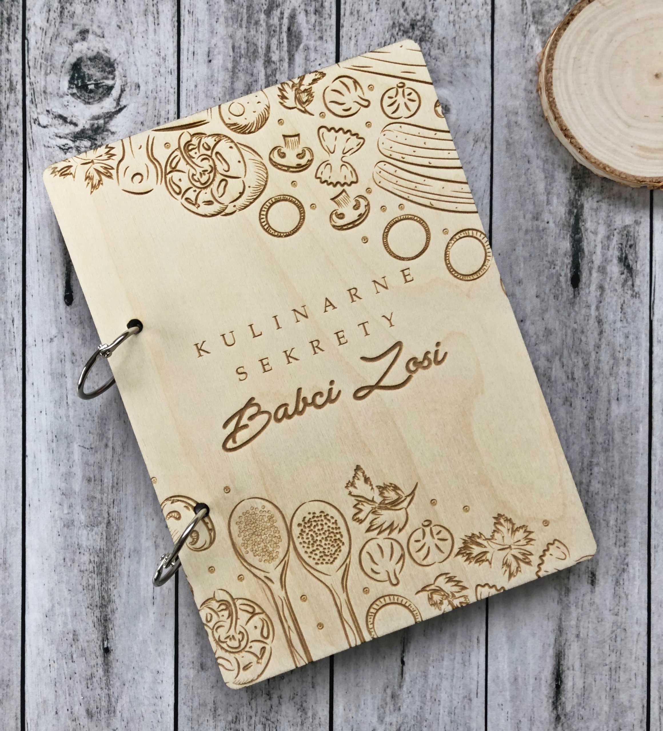Именная тетрадь с рецептами в деревянной обложке. Отличная идея для подарка.