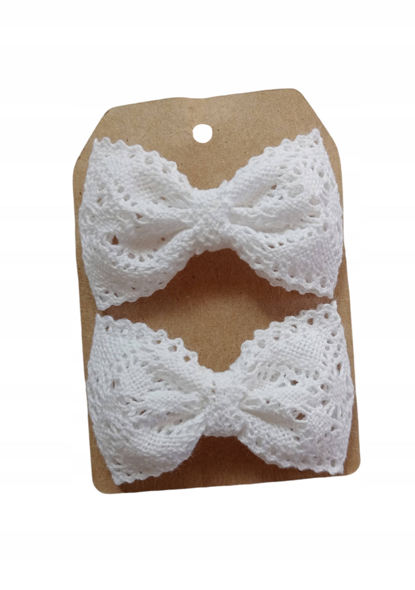 Запонки бантики мереживні 2 шт білі на хрещення для однорічної дитини