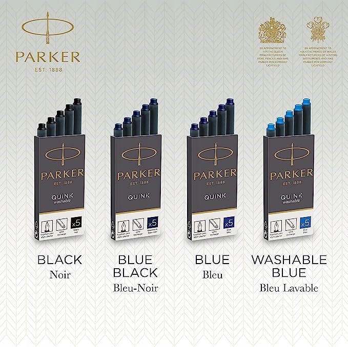 ✔️ Картриджи с чернилами Parker Quink - для всех перьевых ручек Parker с большим резервуаром и запасным резервуаром, информирующим о закончились чернила
