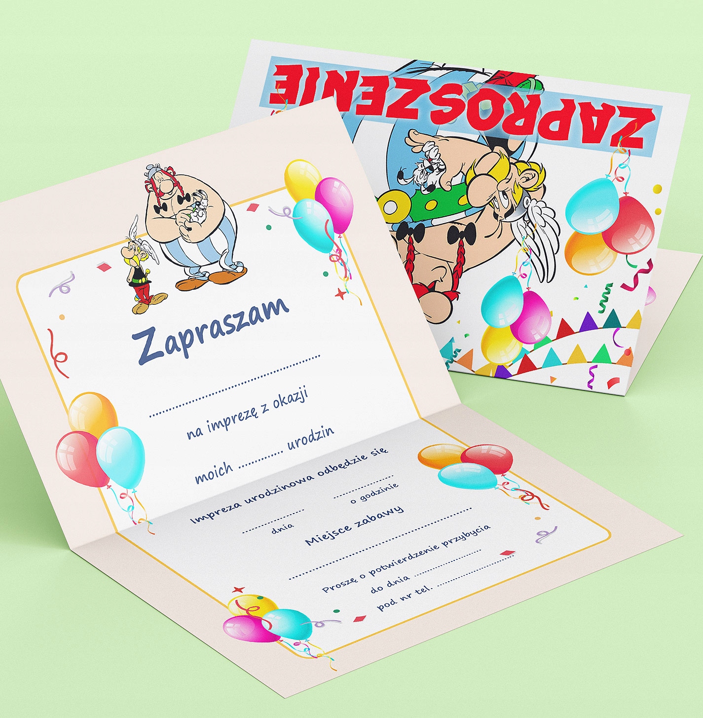 Asterix и Obelix Приглашение на день рождения ребенка + бесплатный конверт