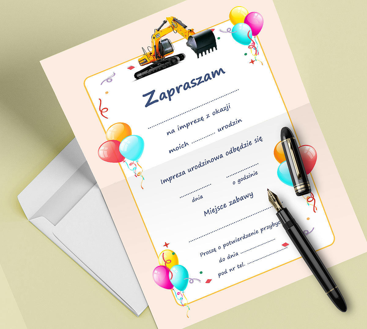Приглашение экскаваторов Строительство Сэни на день рождения ребенка + бесплатный конверт