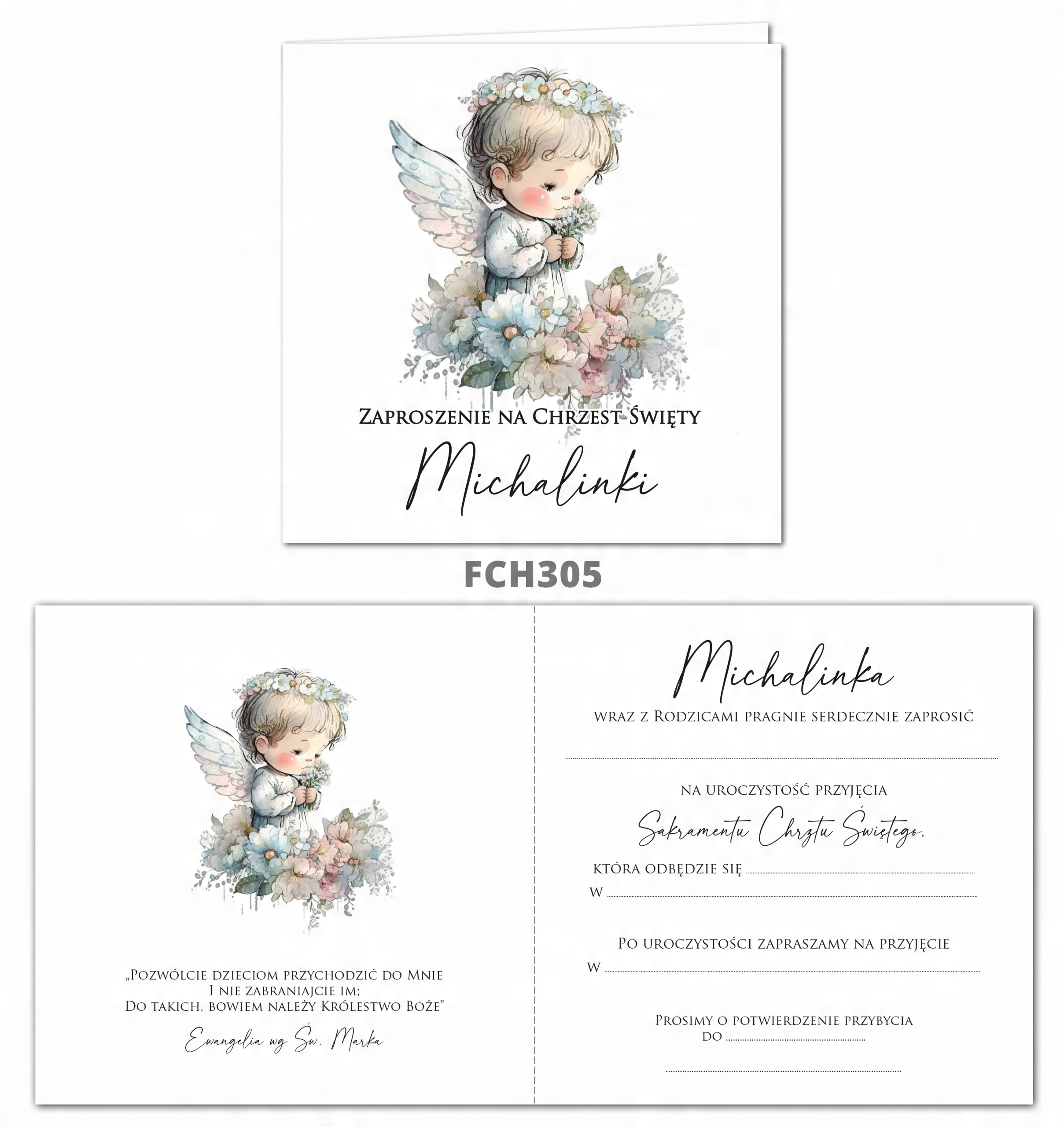 Запрошення на хрещення + ІМ'Я + КОНВЕРТ 30 фч