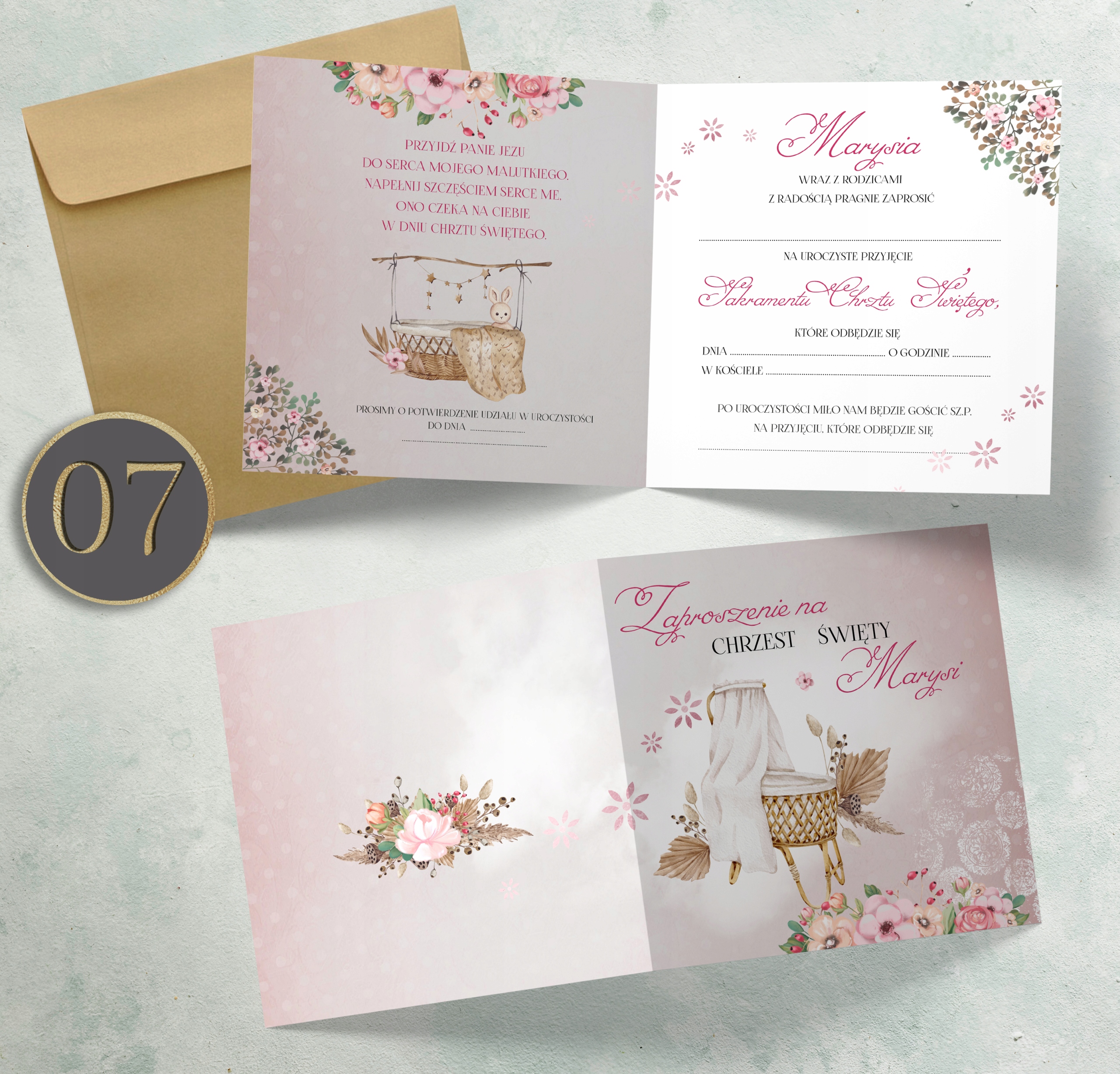 - имя ребенка х 2, т.е.: 1 х для обложки, например Приглашение на Крещение Антония; 1 x к содержанию приглашения, например Антось