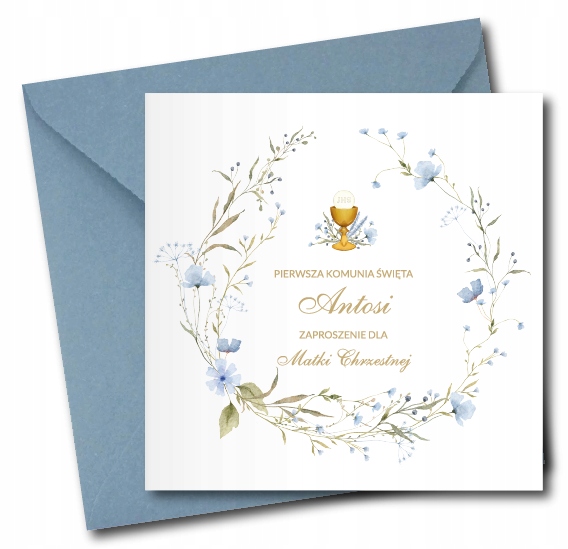 Приглашение на СВЯТОЕ ПРИЧАСТИЕ для КРЕСТНОЙ + имя ребенка НЕЗАБУДКА