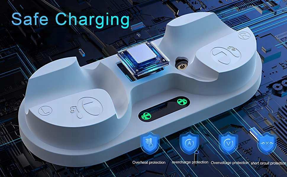 БЕЗОПАСНАЯ ЗАРЯДКА: встроенный интеллектуальный чип предотвращает возникновение скачков напряжения, перенапряжения или коротких замыканий контроллера PS VR2 Sense. Зарядка безопасна и надежна, даже если заряжается ночью.