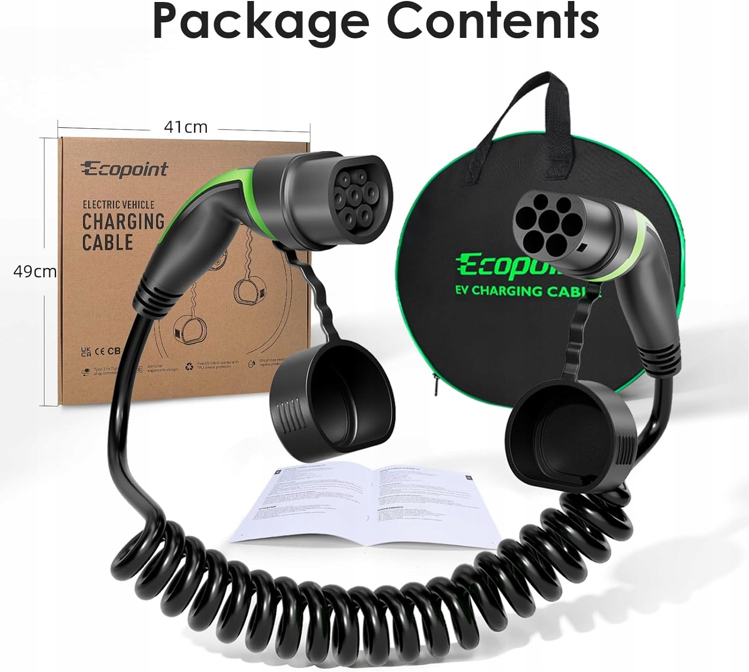 - Легко хранить и переносить:Спиральный кабель ECOPOINT типа 2 легко монтировать. хранить и носить. Он имеет компактную конструкцию, которая на 30% меньше аналогичных продуктов и позволяет стабильно работать одной рукой. Благодаря прилагаемой водонепроницаемой сумке из нетканого материала Oxford и застежке-липучке вы можете удобно хранить зарядный кабель во время путешествия и поддерживать багажник в чистоте и порядке даже в дождливые дни.