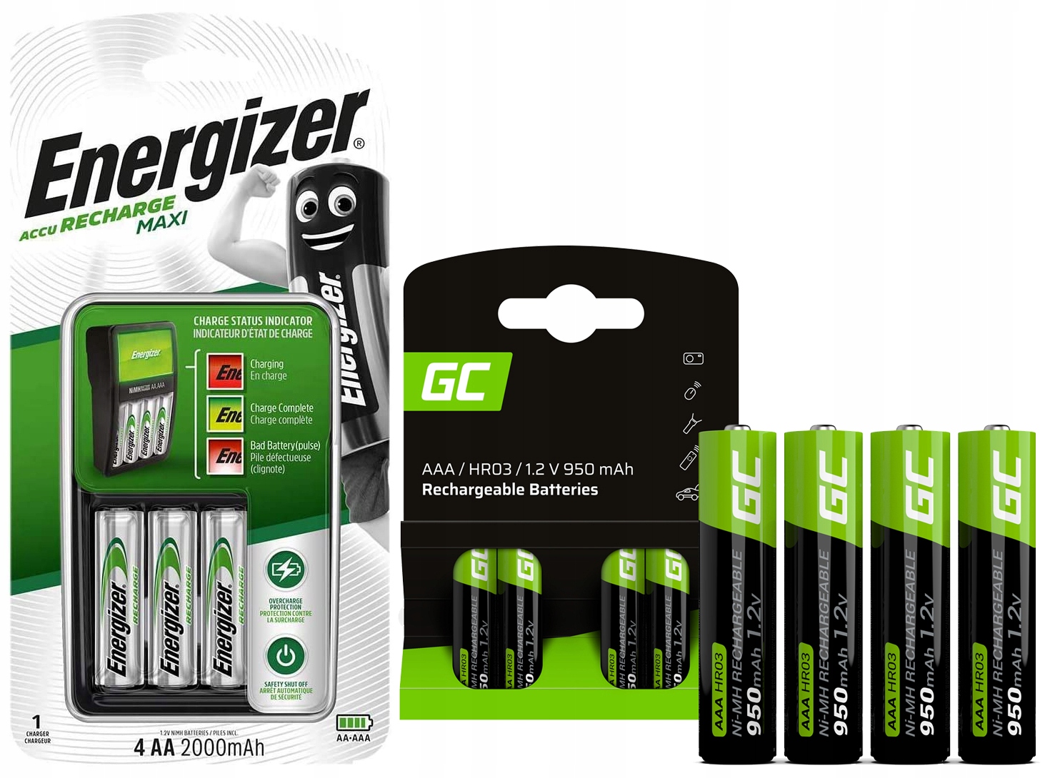 В комплект входят 4 аккумулятора Enerigzer R6 AA емкостью 2000 мАч