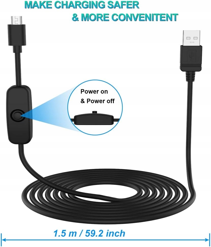- Переключатель включения/выключения: USB-кабель, совместимый с Raspberry Pi, 1.5. м длиной, с выключателем. Чтобы перезапустить PI, не нужно тянуть кабель, просто нажмите кнопку.