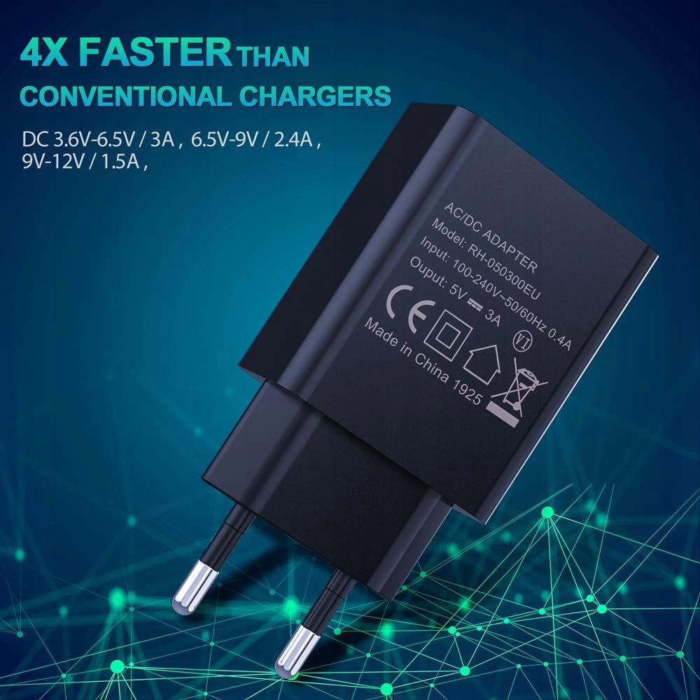 - Сертификат безопасности: Настенное зарядное устройство USB прошло испытания CE/FCC/RoSH в ведущих международно признанных лабораториях. Вход: 100–240 В переменного тока, быстрый источник питания: 5 В, 3 А (совместим с 2,5 А, 2 А, 1 А).