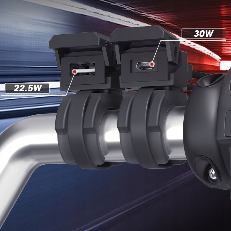 ЗАРЯДНИЙ ПРИСТРІЙ ДЛЯ МОТОЦИКЛА 2 В 1 Type-C PD 30W+USB QC3.0 18W ШВИДКА ЗАРЯДКА IP66