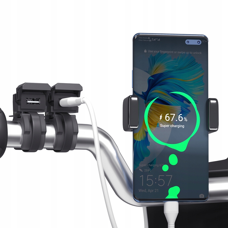 Двойное зарядное устройство для мотоцикла USB+Type-C/PD для быстрой зарядки.