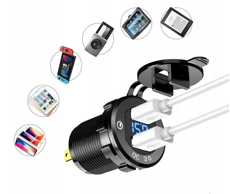 Водонепроницаемое быстрое зарядное устройство, 2 порта USB QC3.0