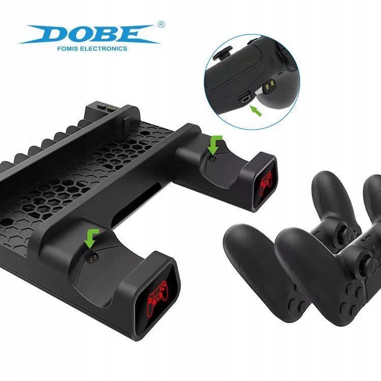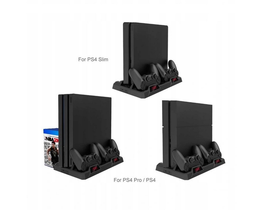 Охлаждающая подставка 3-в-1 для PlayStation 4, SLIM и PRO с док-станцией для 2 планшетов и подставкой для 10 игр DOBE.