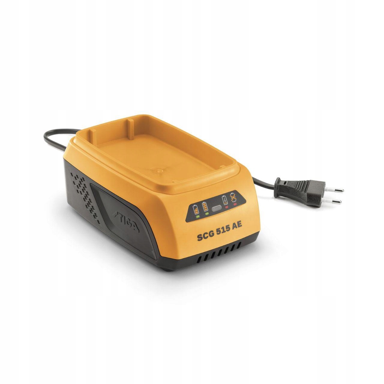 Зарядное устройство STIGA SCG 515 AE позволяет заряжать аккумуляторы устройств серии 500, модели: SBT 520 AE, SBT 540 AE и SBT 550 AE. Выходной ток 1,5 А. Дополнительной функцией является светодиодный индикатор, показывающий состояние заряда аккумулятора.