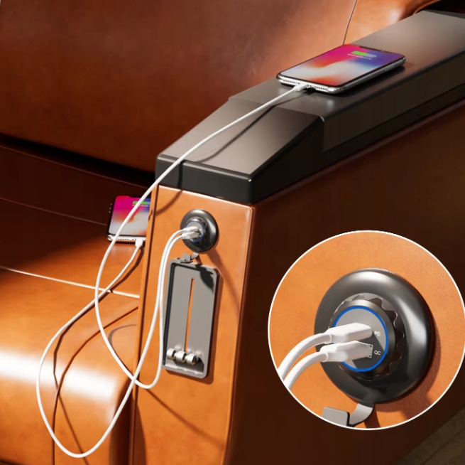 - Зарядное устройство USB с двумя гнездами USB (PD QC3.0) с силовыми кабелями