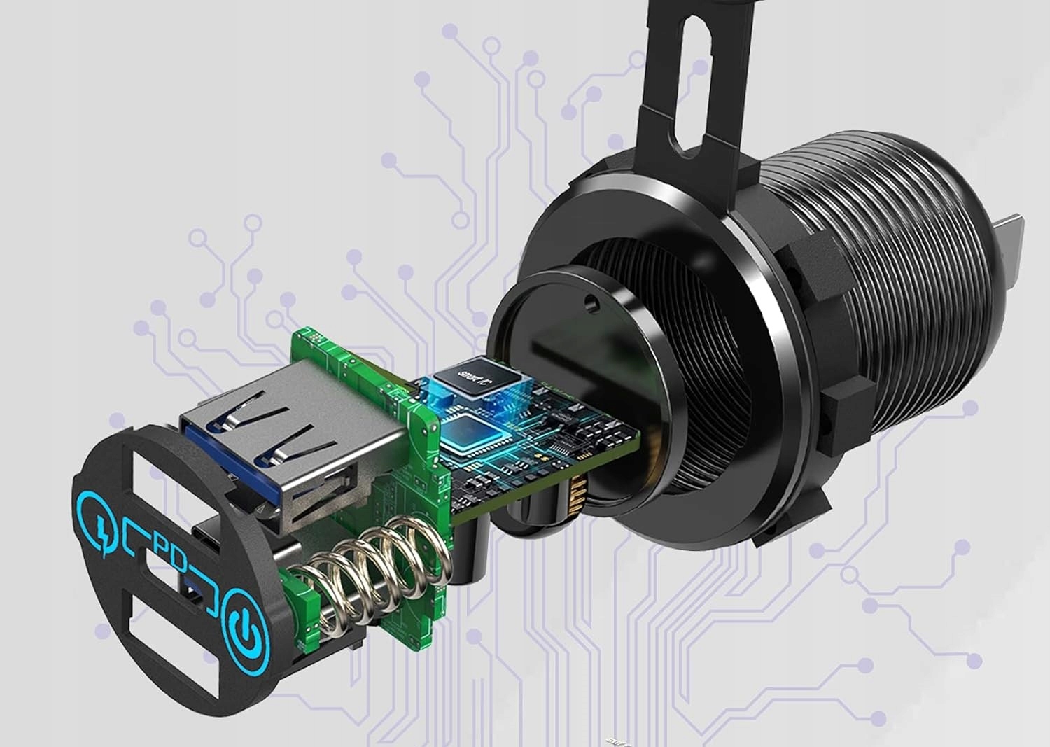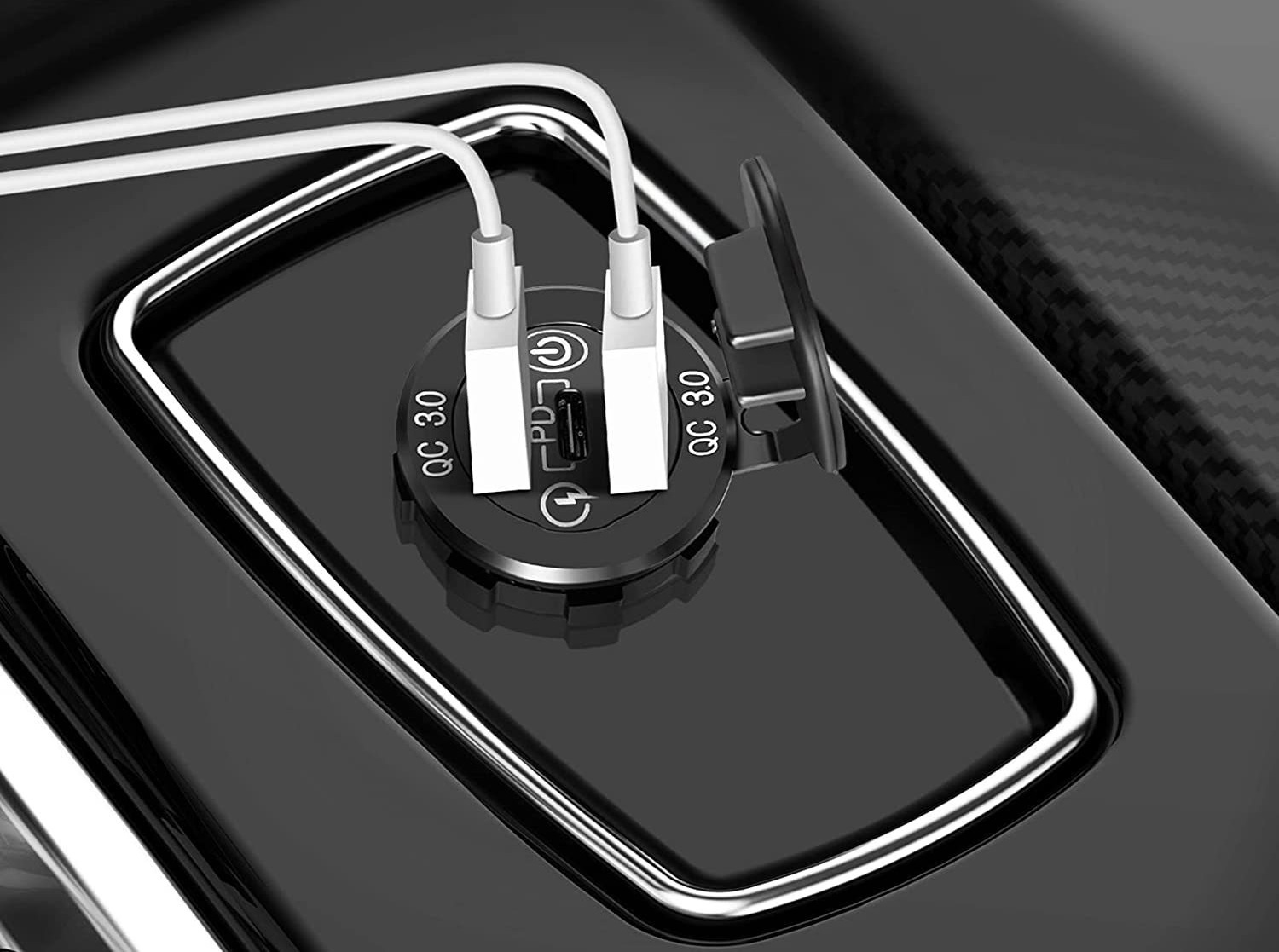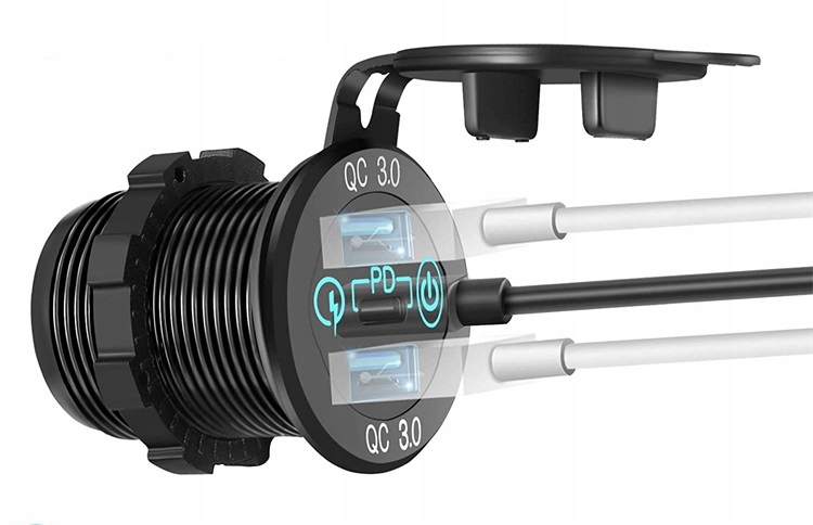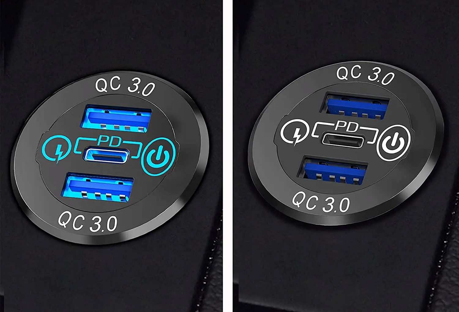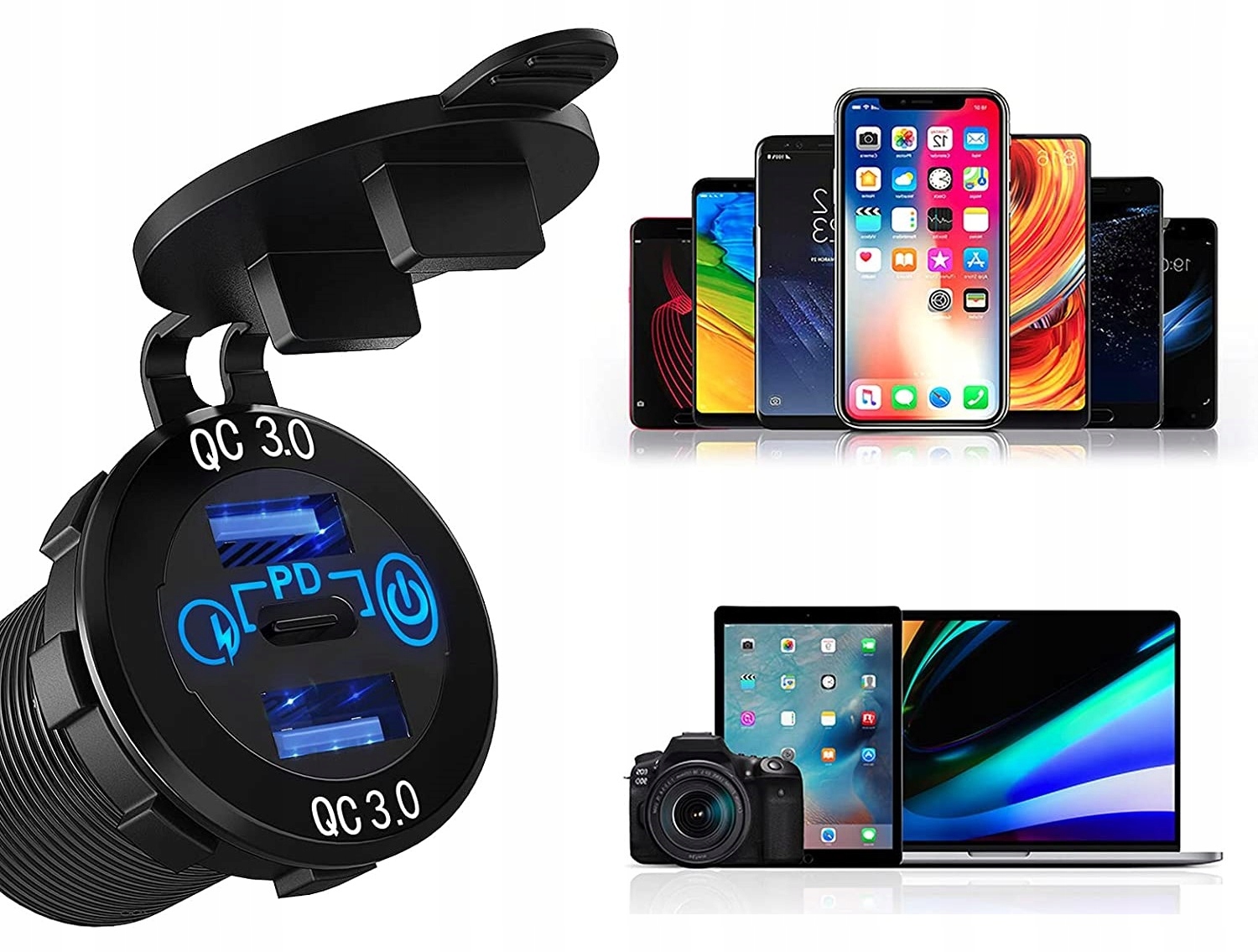 ЗАРЯДНОЕ УСТРОЙСТВО ПАНЕЛЬ ВОЛЬТМЕТРА 2x USB QC3.0 + PD USB C 56ВТ ПЕРЕКЛЮЧАТЕЛЬ 12В 24В