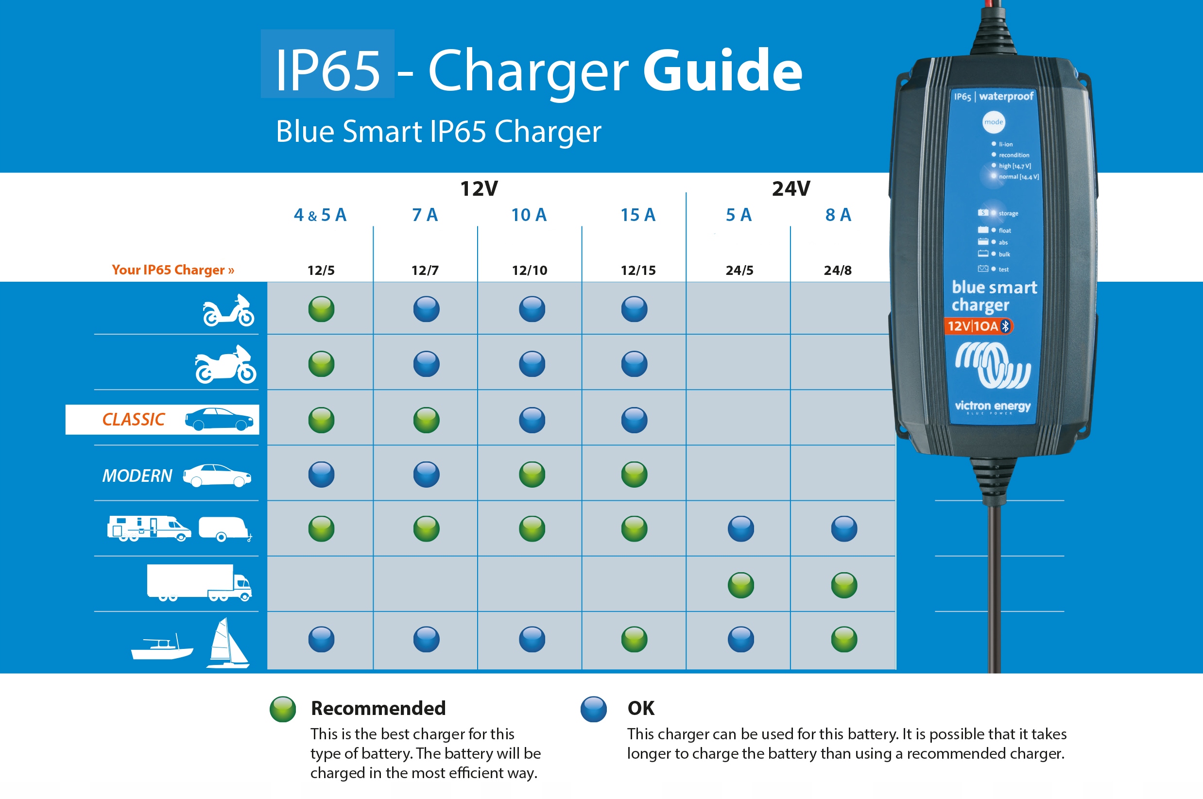 Характеристики зарядного устройства Blue Smart Charger IP65: