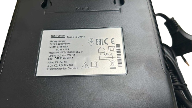 - Предназначен для зарядки Karcher 18V